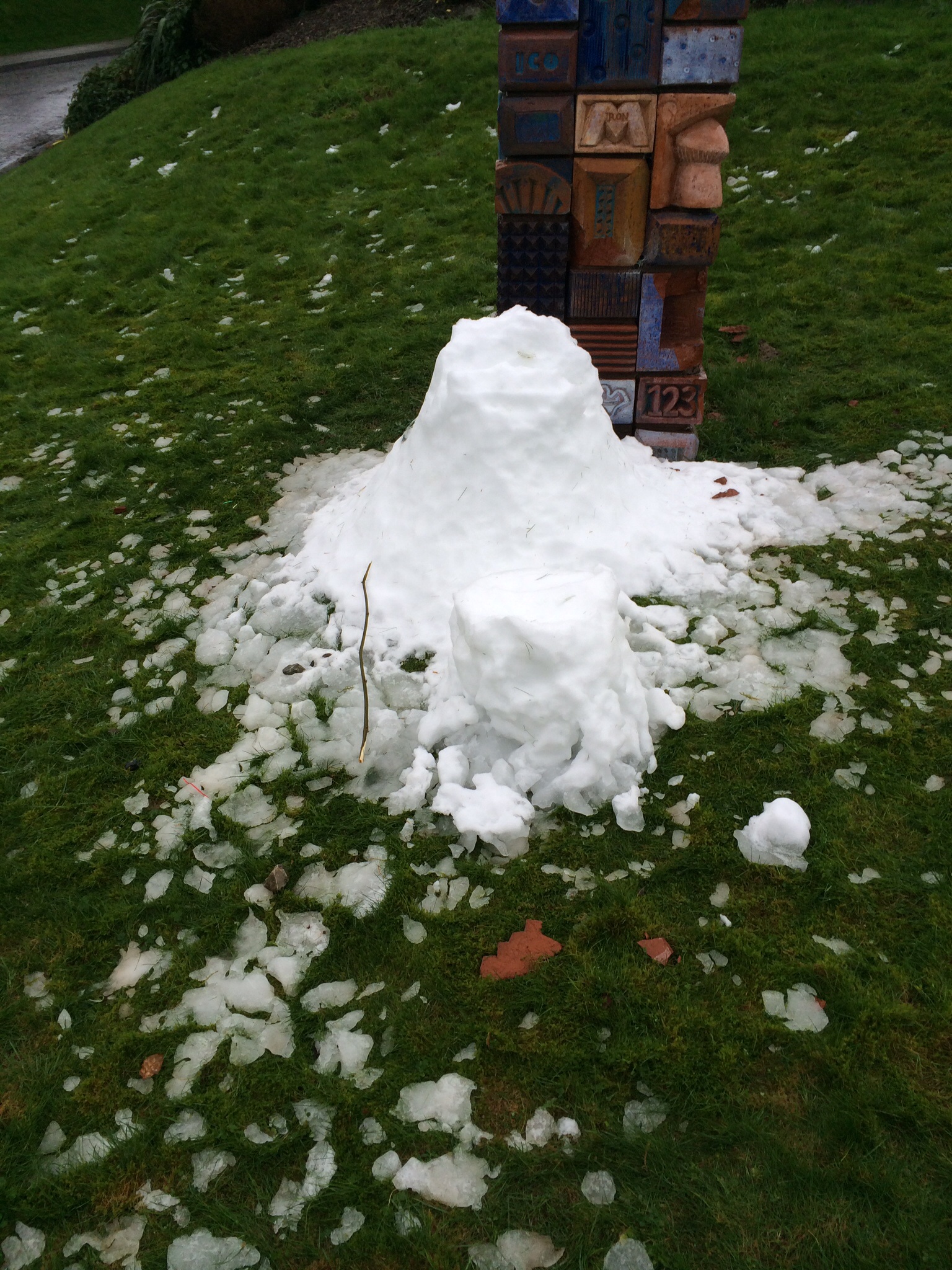 Here are some photos of the building crew (a.k.a. my minions), building the snowman!