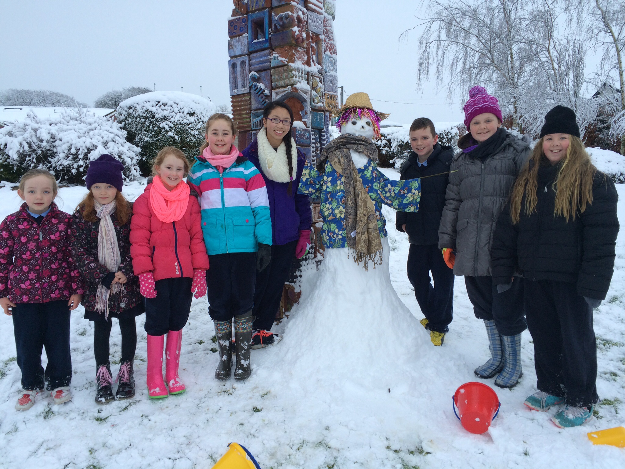 But the rest of us got busy building! Congratulations to our snowman building team this year who built a fantastically tall (and Hawaiian?!) snowman! Isn’t he fabulous? Well done Ava, Jessica, Aoife, Éadaoin, Lottie, Luke, Rebecca and Robyn! Any name suggestions for our snowman?
