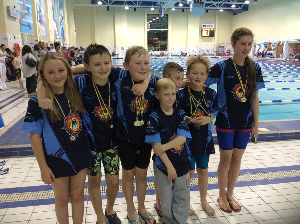 Here are the Rathpeacon representatives at the Munster School Swimming Championships held in U.L. last week end. Out of 107 schools competing, Rathpeacon school cleaned up. It was a great day!!