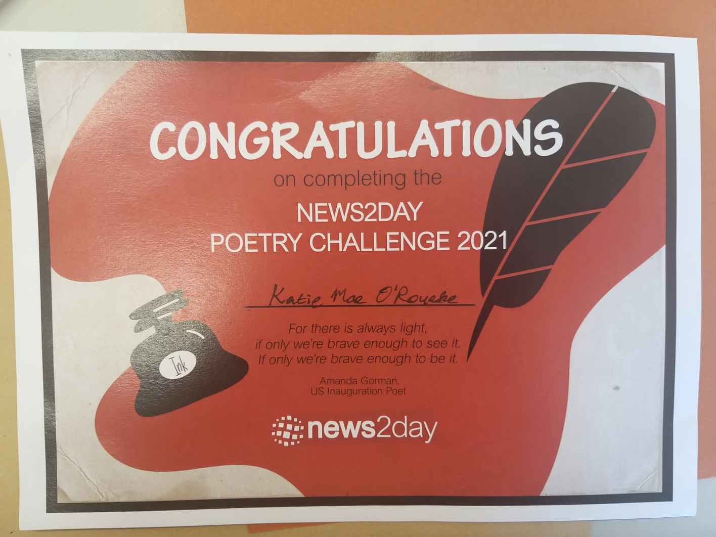 We were so impressed today when we heard Katie’s beautiful poem! What an achievement! Congratulations Katie!