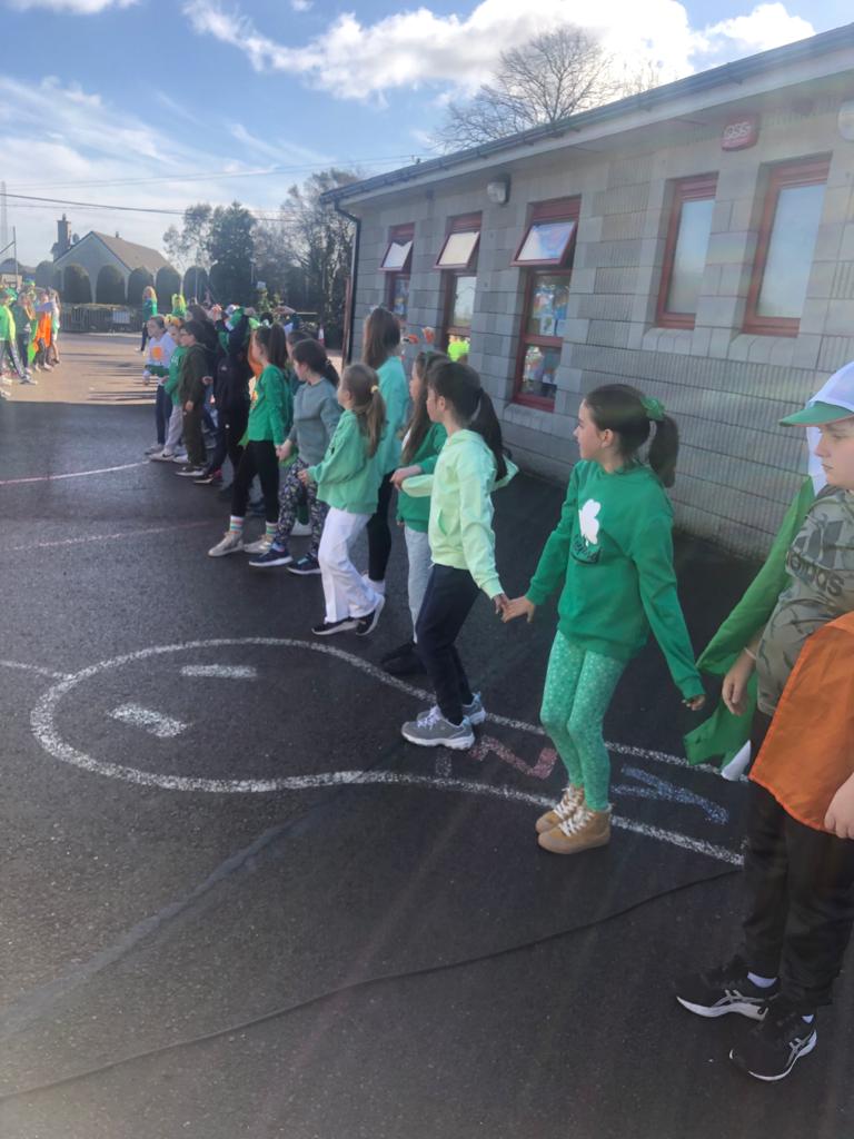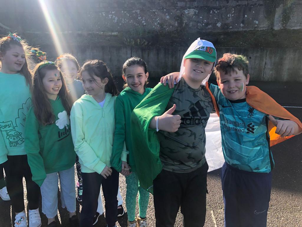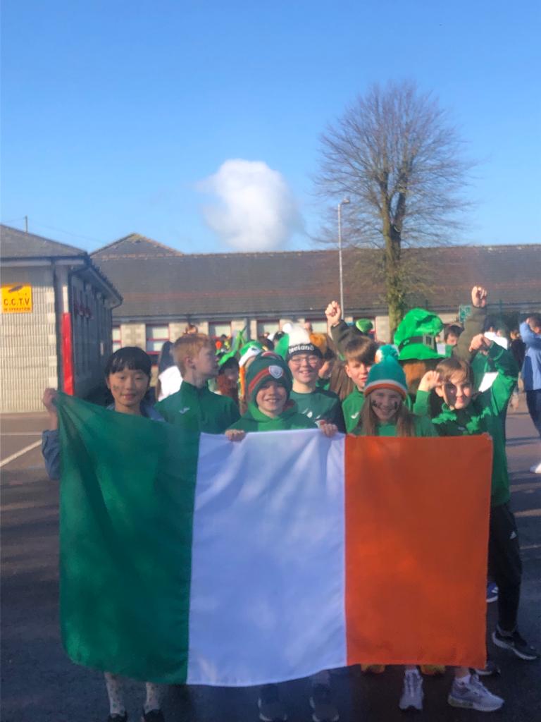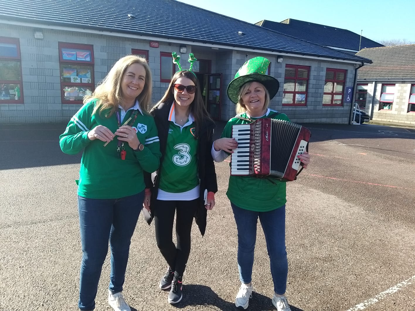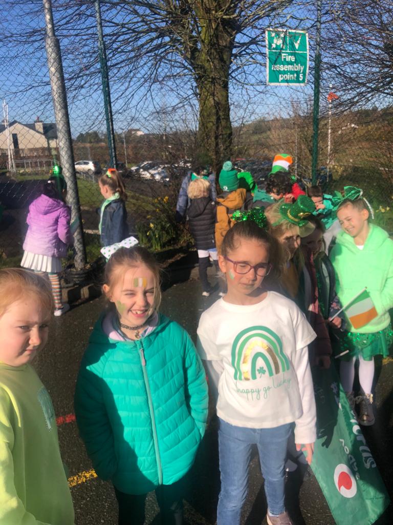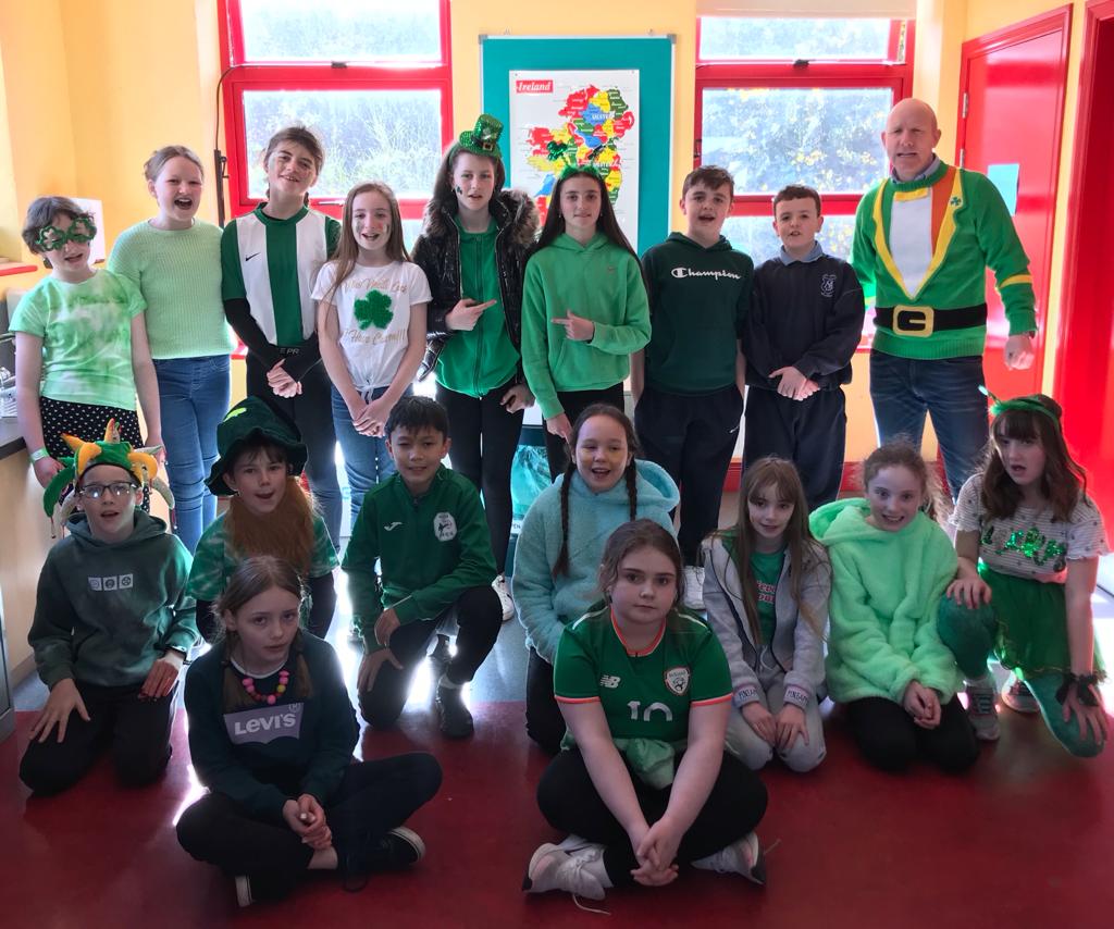 Bhí lá iontach againn inniu ag céiliúradh Lá Fhéile Pádraig. There were great scenes around the school today as we pulled out all the stops to celebrate our Irish language, music, dance and song. The parade through the school grounds was a wonderful start to our celebrations. The céilí was thar barr and we finished off with a rousing renditon of Amhrán na bhFiann.