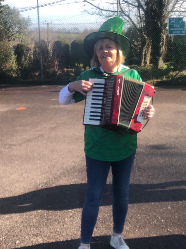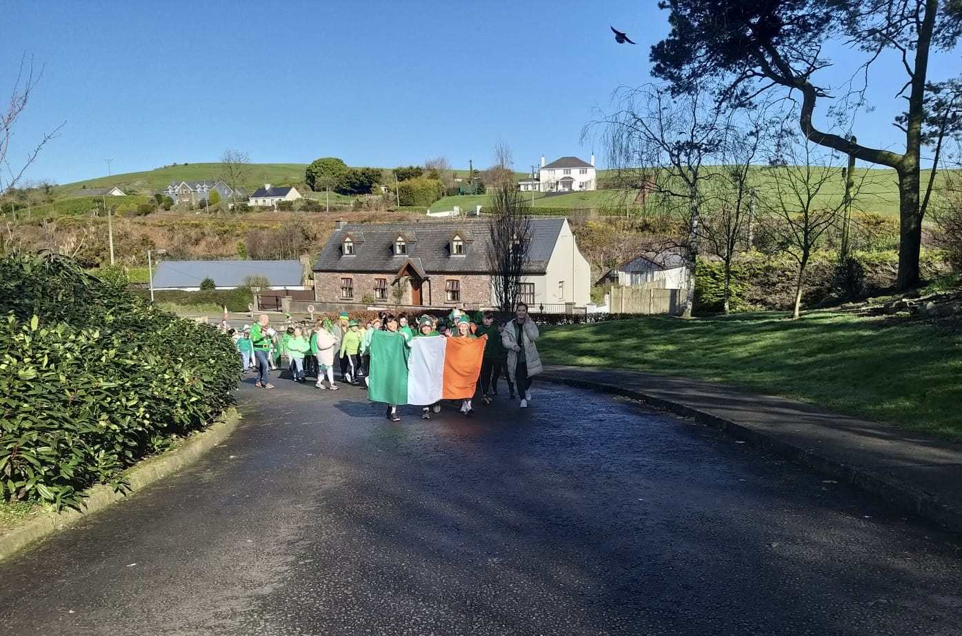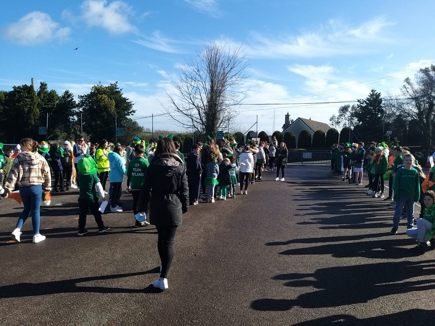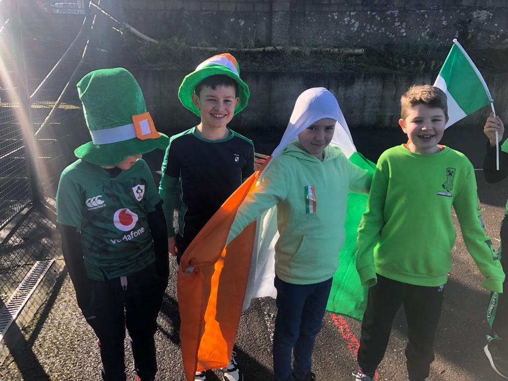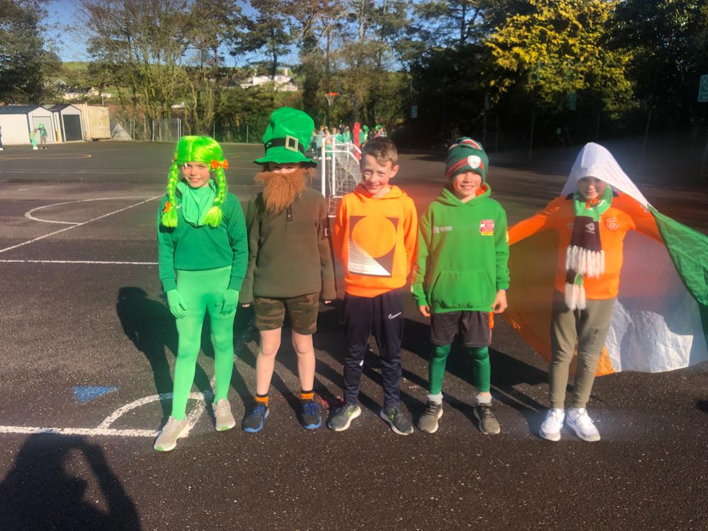 Bhí lá iontach againn inniu ag céiliúradh Lá Fhéile Pádraig. There were great scenes around the school today as we pulled out all the stops to celebrate our Irish language, music, dance and song. The parade through the school grounds was a wonderful start to our celebrations. The céilí was thar barr and we finished off with a rousing renditon of Amhrán na bhFiann.