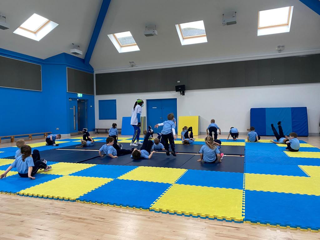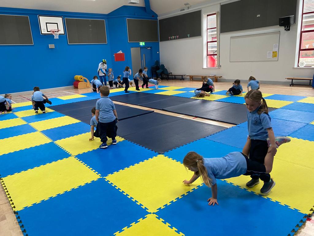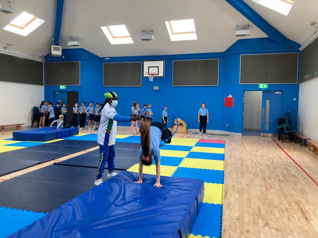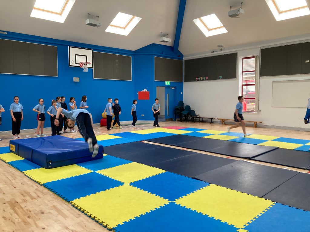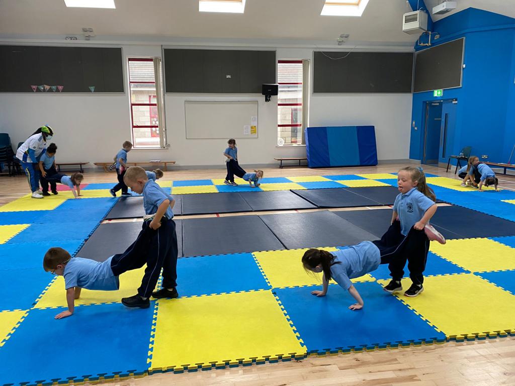 We are very fortunate to have a visiting, specialist coach for weekly gymnastics lessons. Every child from Junior Infants to Sixth Class takes part and learns new gymnastic skills during the school year.