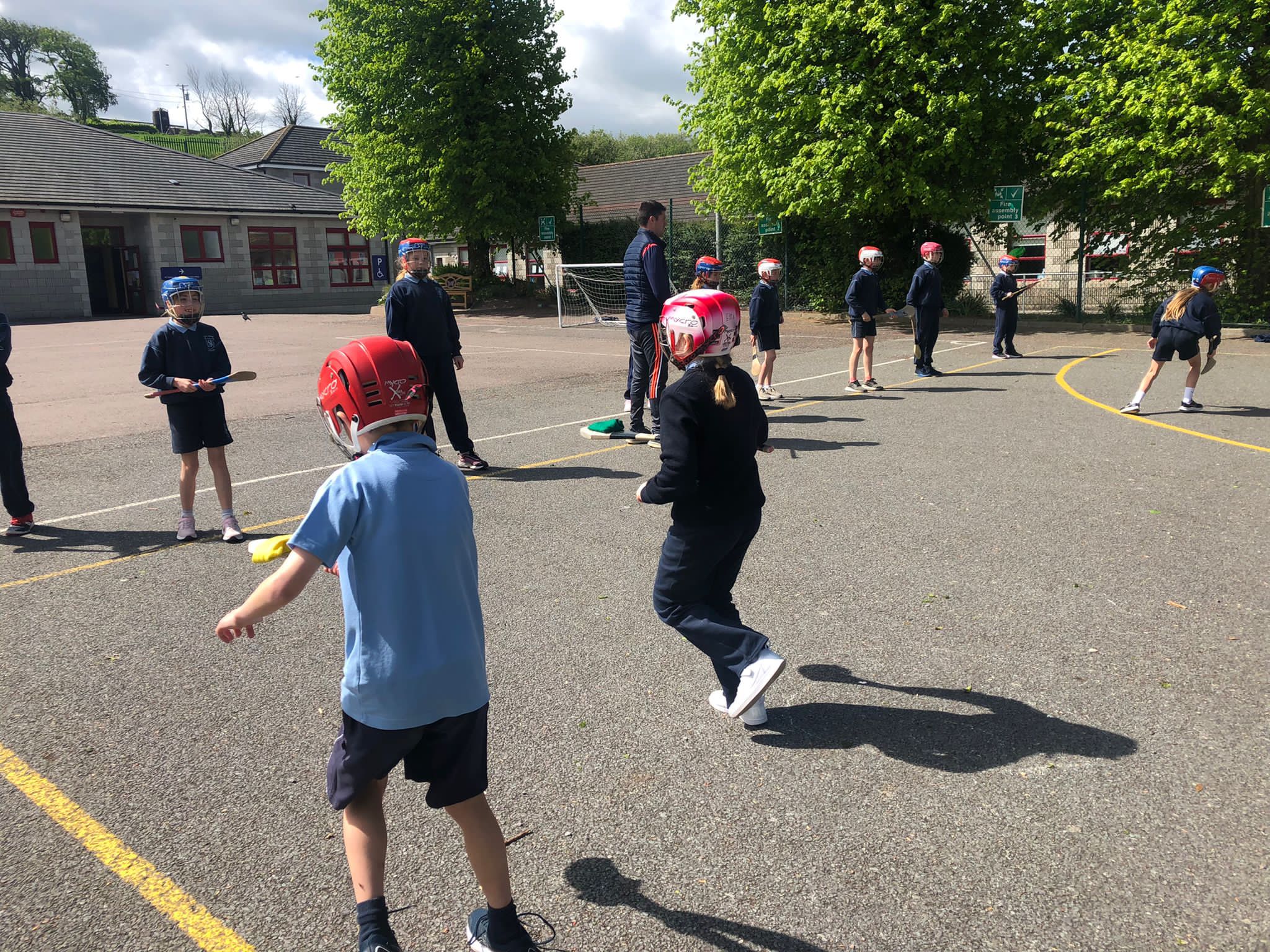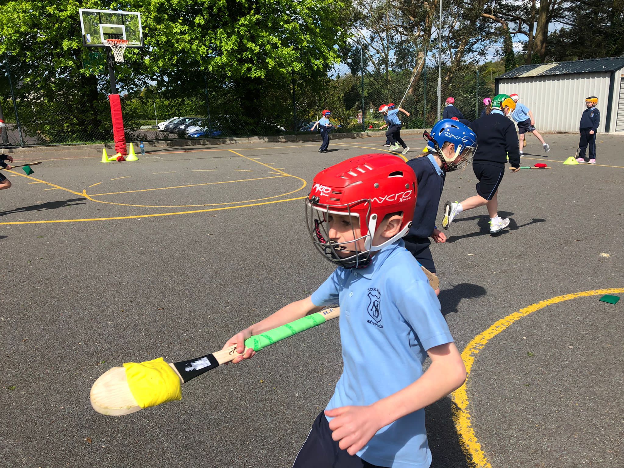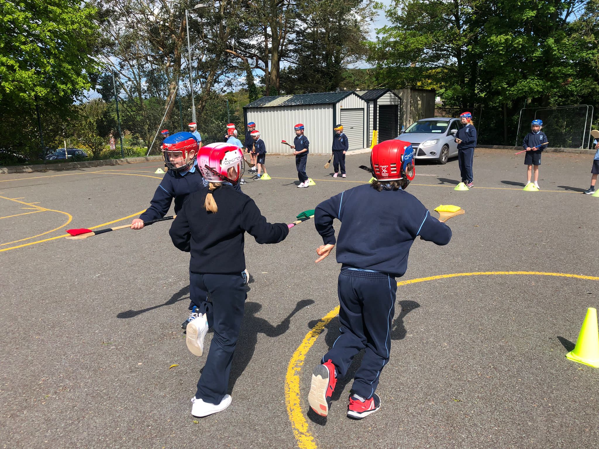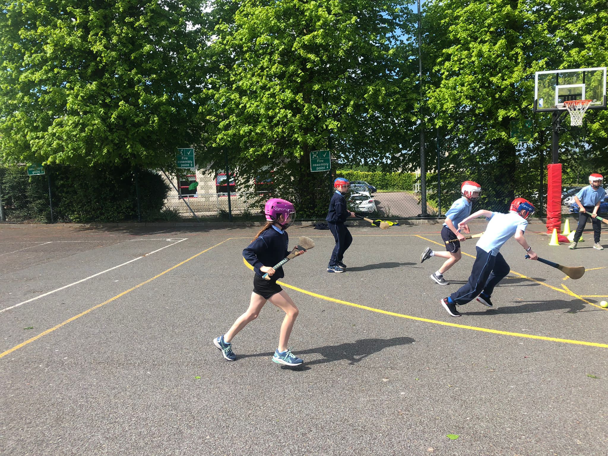 We play plenty of games during our PE lessons, practising skills such as sending, receiving, throwing, kicking and passing. Younger classes play lots of mini-games, while senior classes play formal games and matches in many sports including – hurling, camogie, football, soccer, dodgeball and basketball. Matches and games during PE lessons always focus on getting involved, giving it a go and having fun!