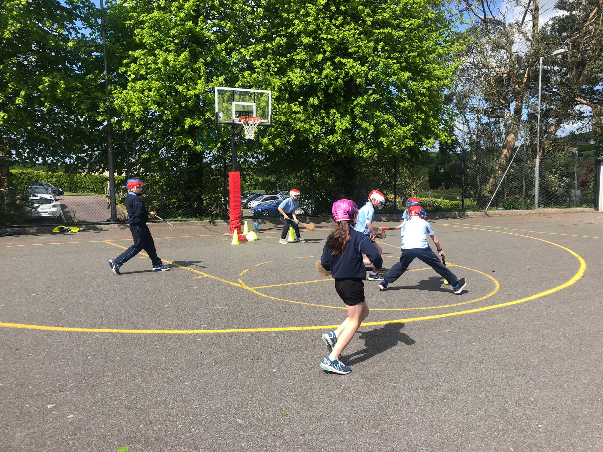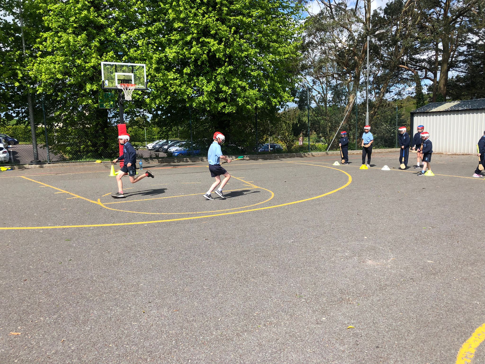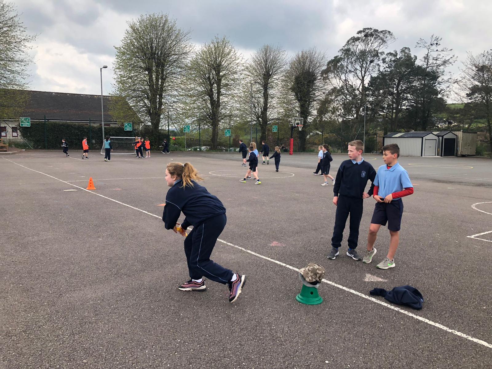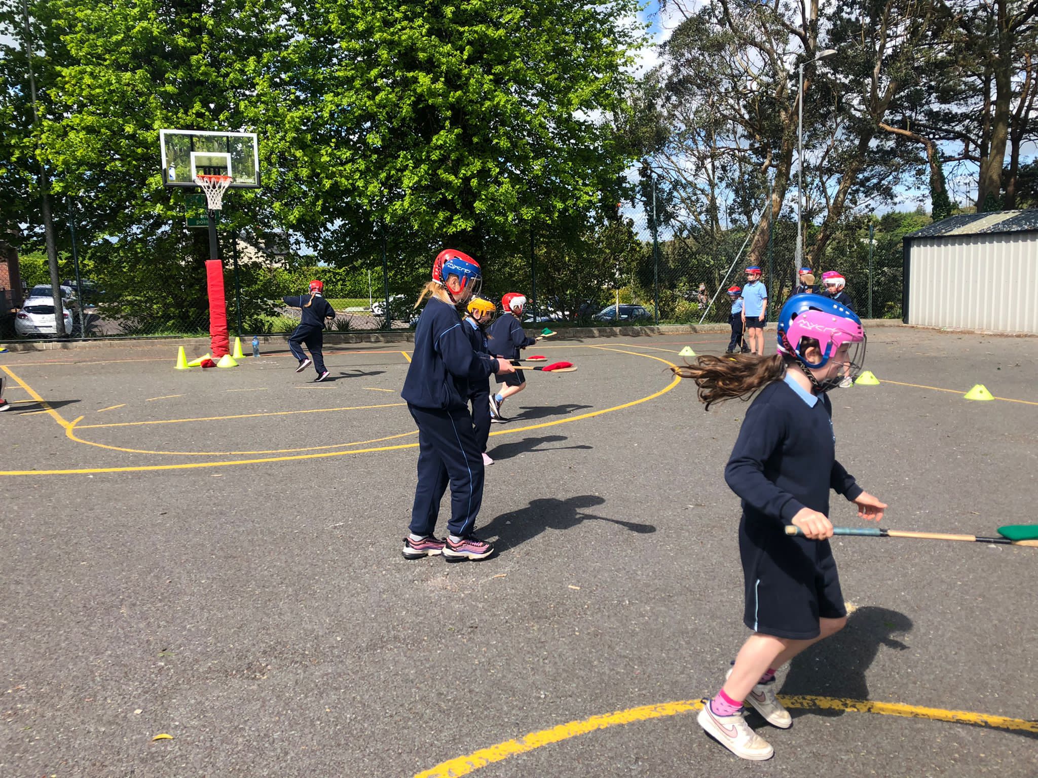 We play plenty of games during our PE lessons, practising skills such as sending, receiving, throwing, kicking and passing. Younger classes play lots of mini-games, while senior classes play formal games and matches in many sports including – hurling, camogie, football, soccer, dodgeball and basketball. Matches and games during PE lessons always focus on getting involved, giving it a go and having fun!