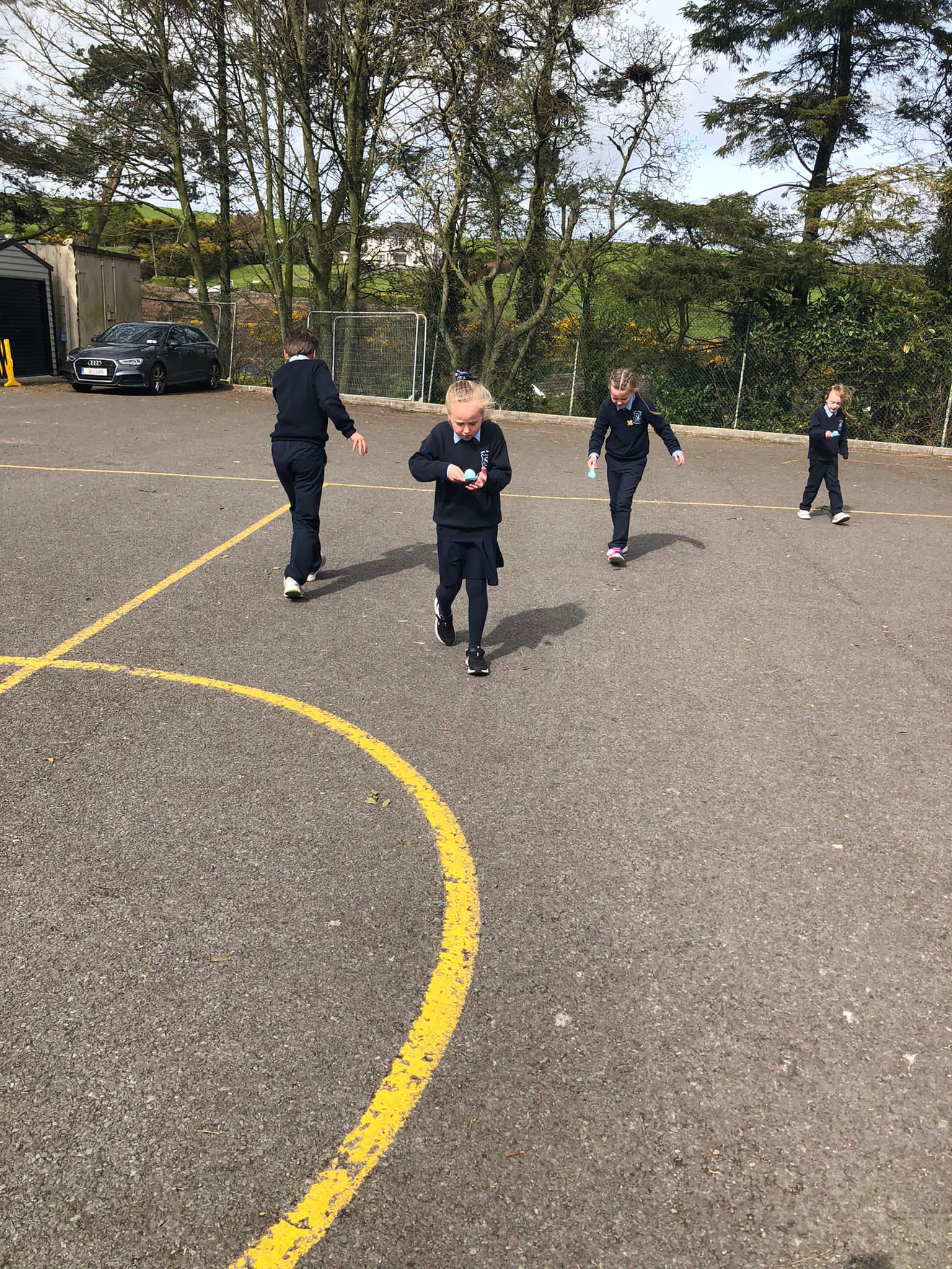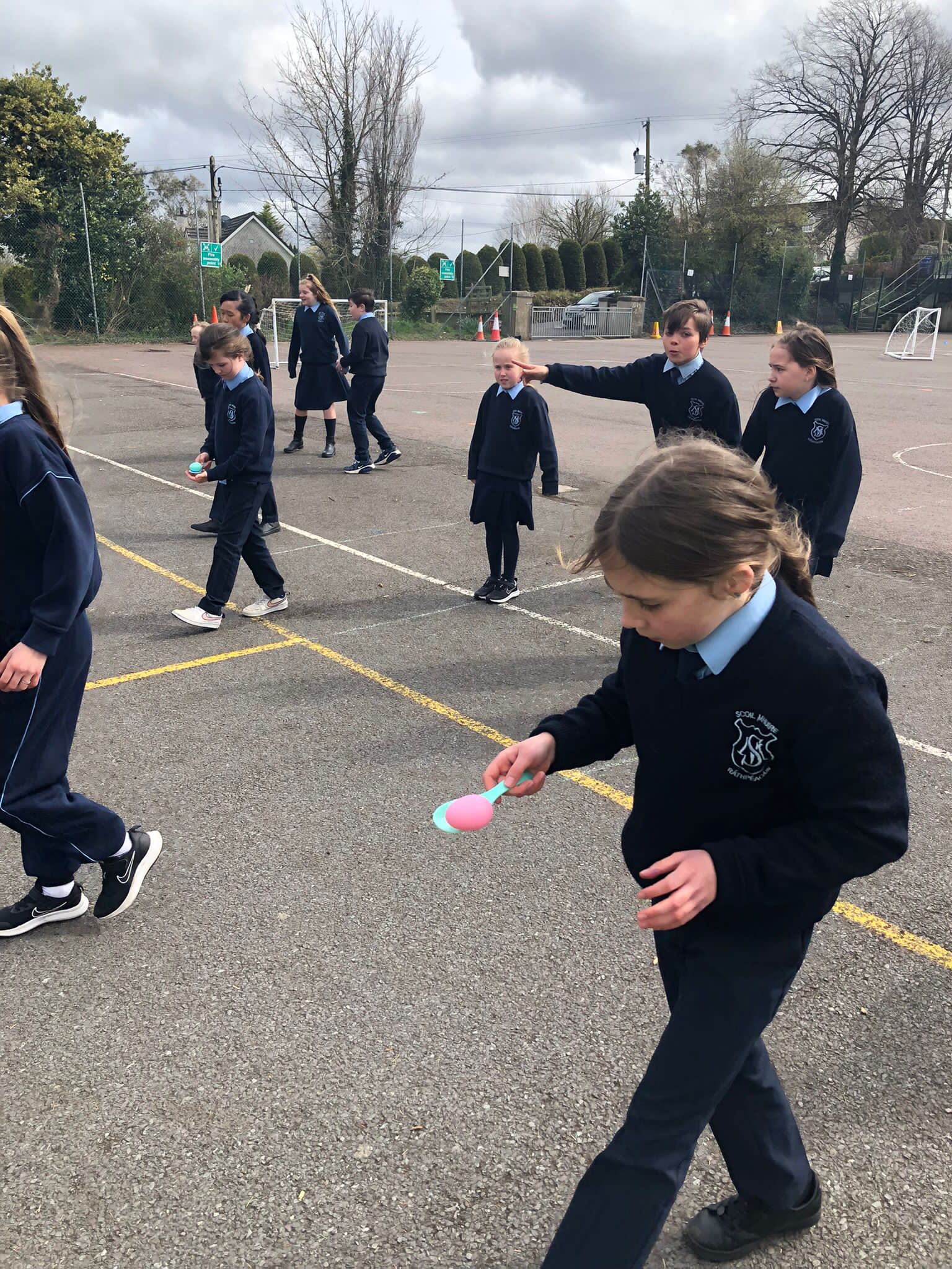 Of course we also do plenty of running for fun! Here are Third and Fourth Class running some very thematically appropriate ‘egg and spoon’ races just before Easter!