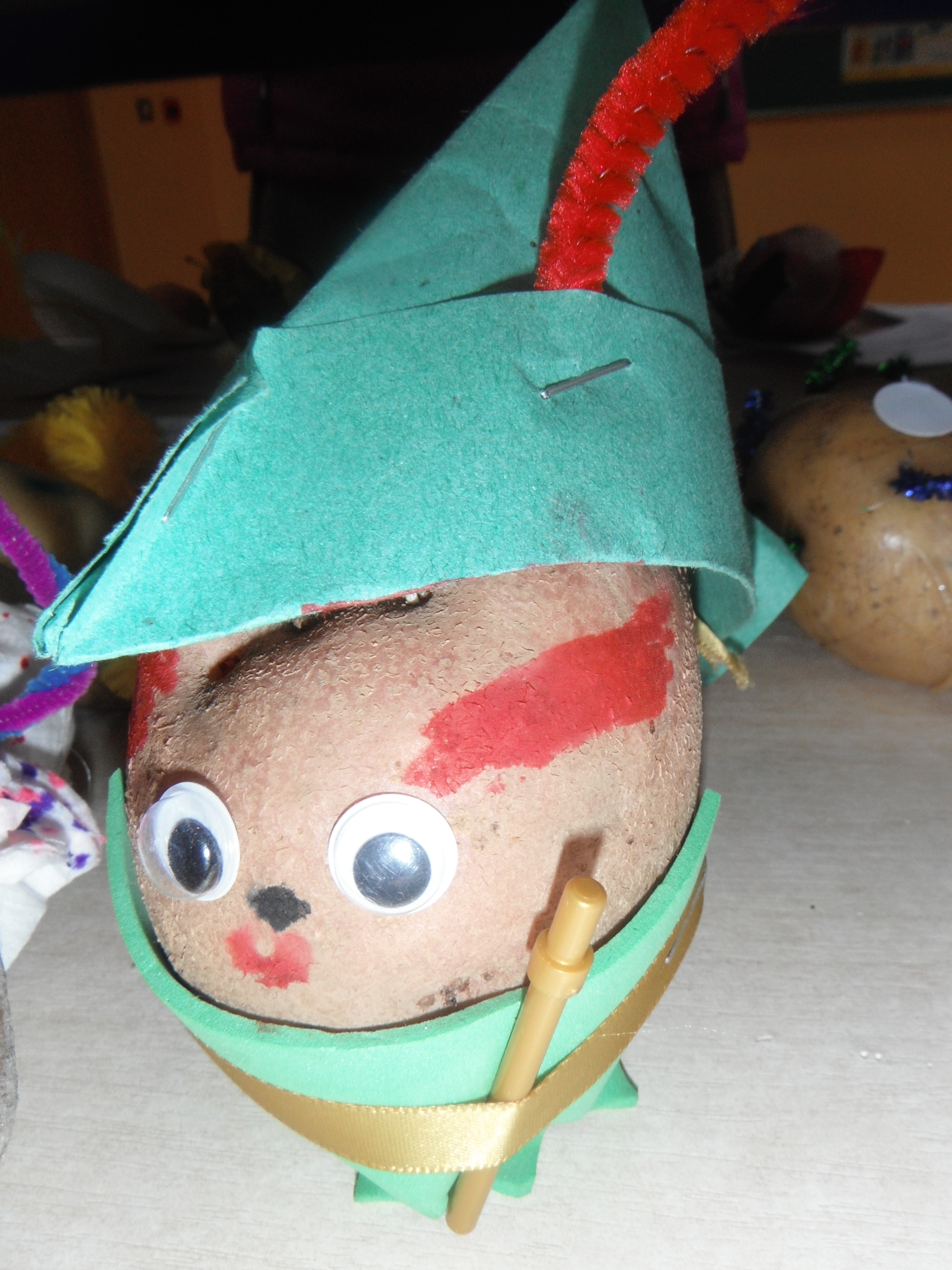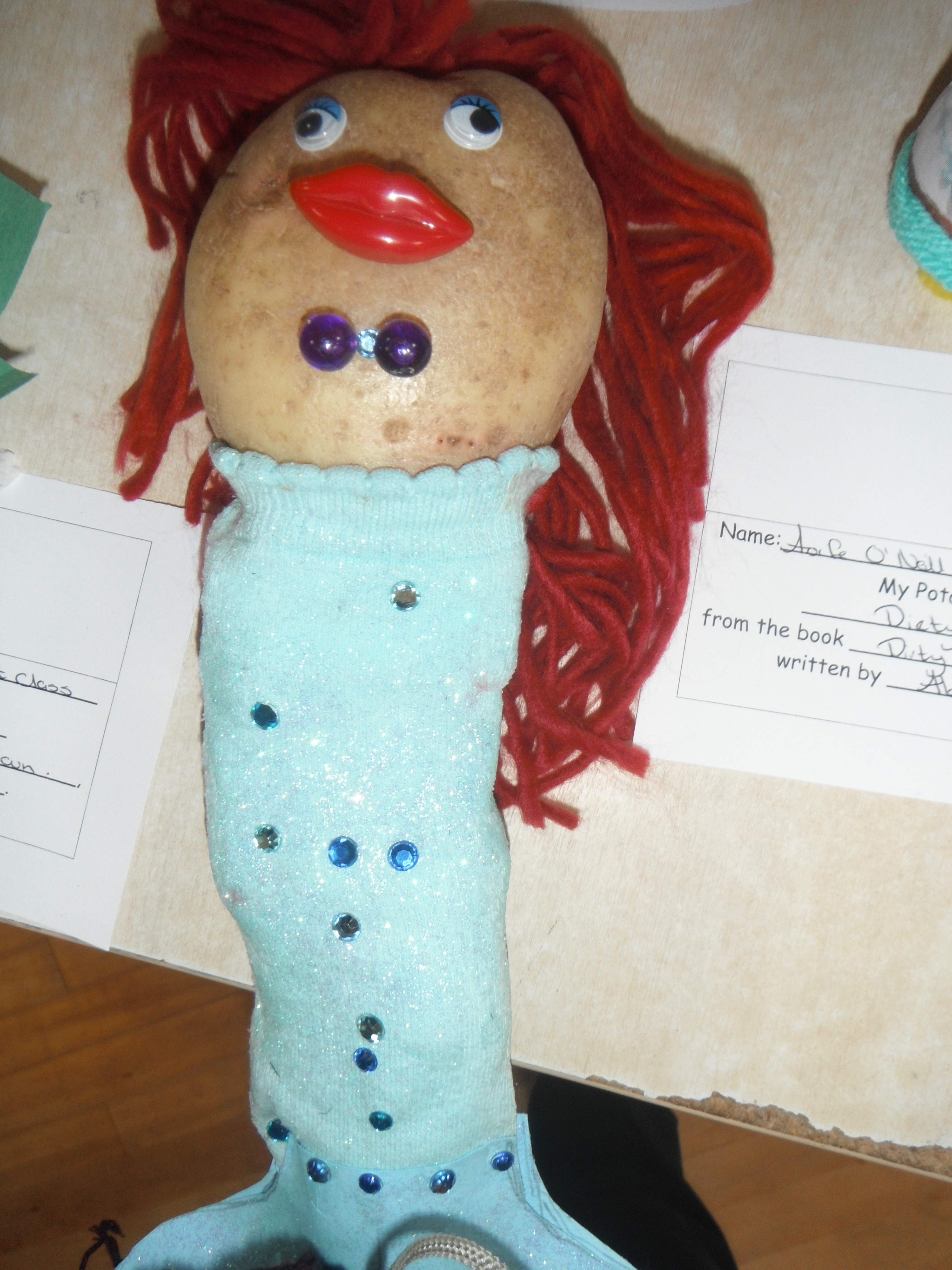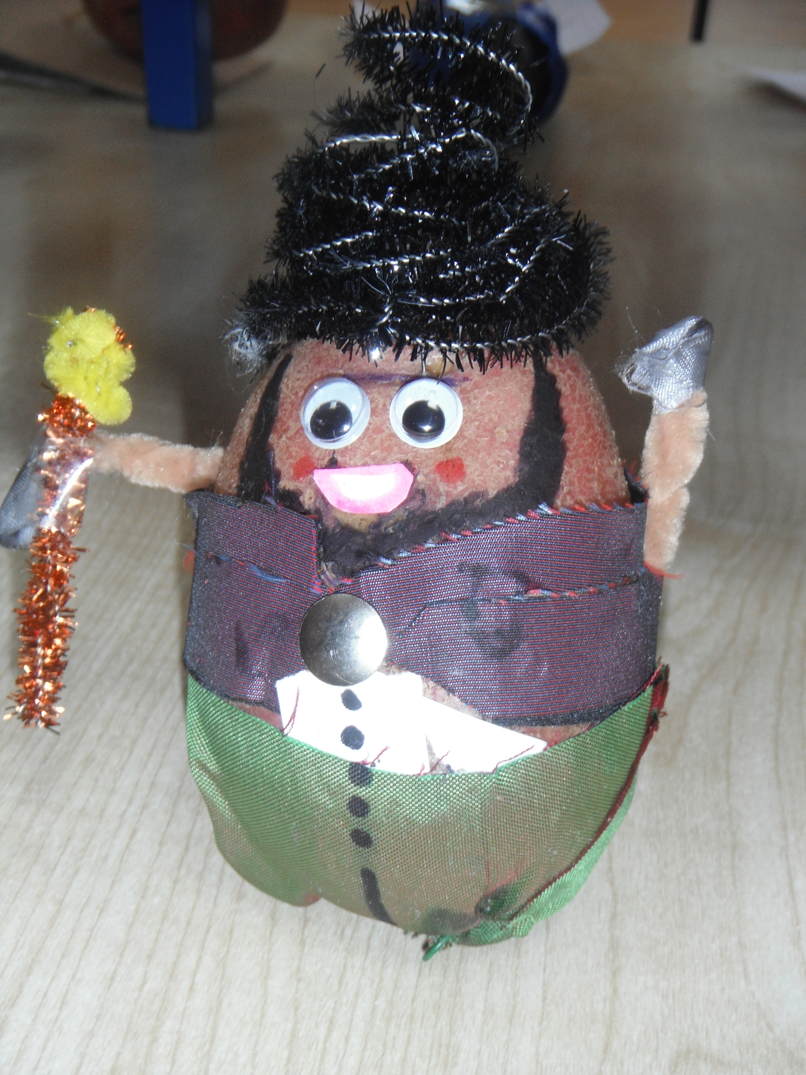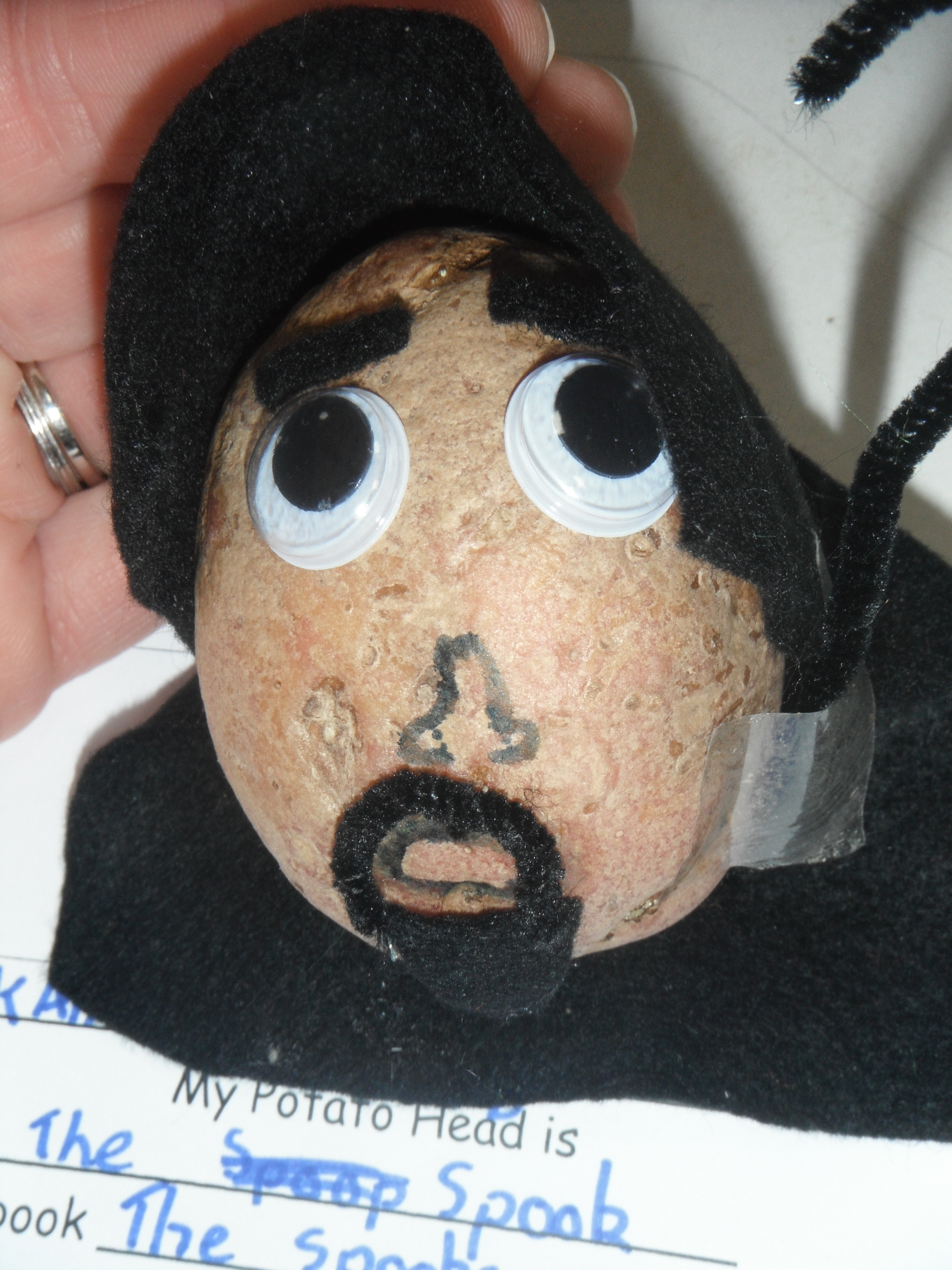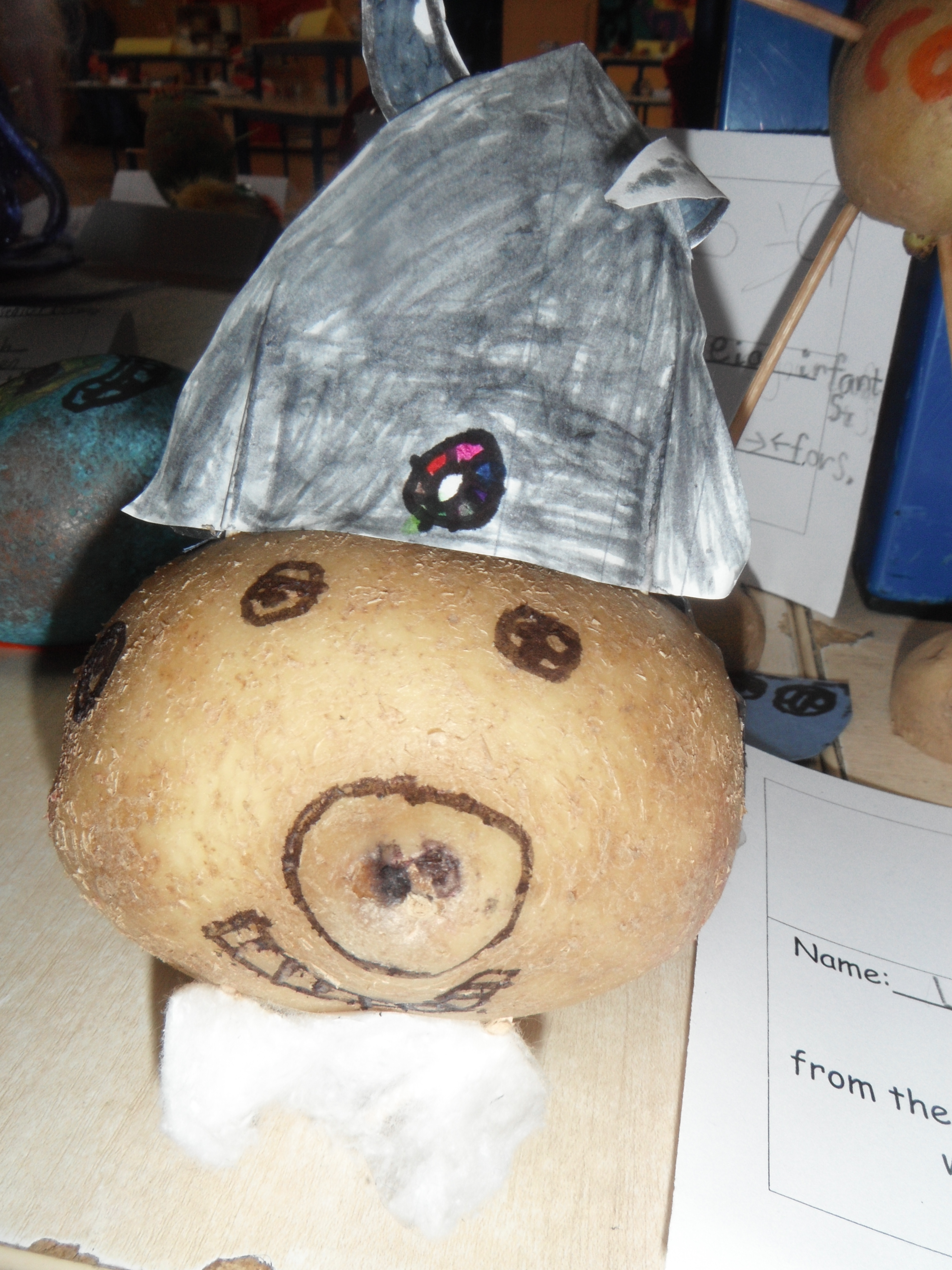 These are photographs of the fantastic potato head characters that children made this weekend and brought to school on Monday. All of the potato heads were made to resemble characters from a book. We had characters from fairytales, autobiographies, comic books and children’s novels. The display in the hall on Monday afternoon was wonderful. Every single potato head designer deserves a huge ‘WELL DONE!’ because these potatoes are absolutely amazing! Have a look…
