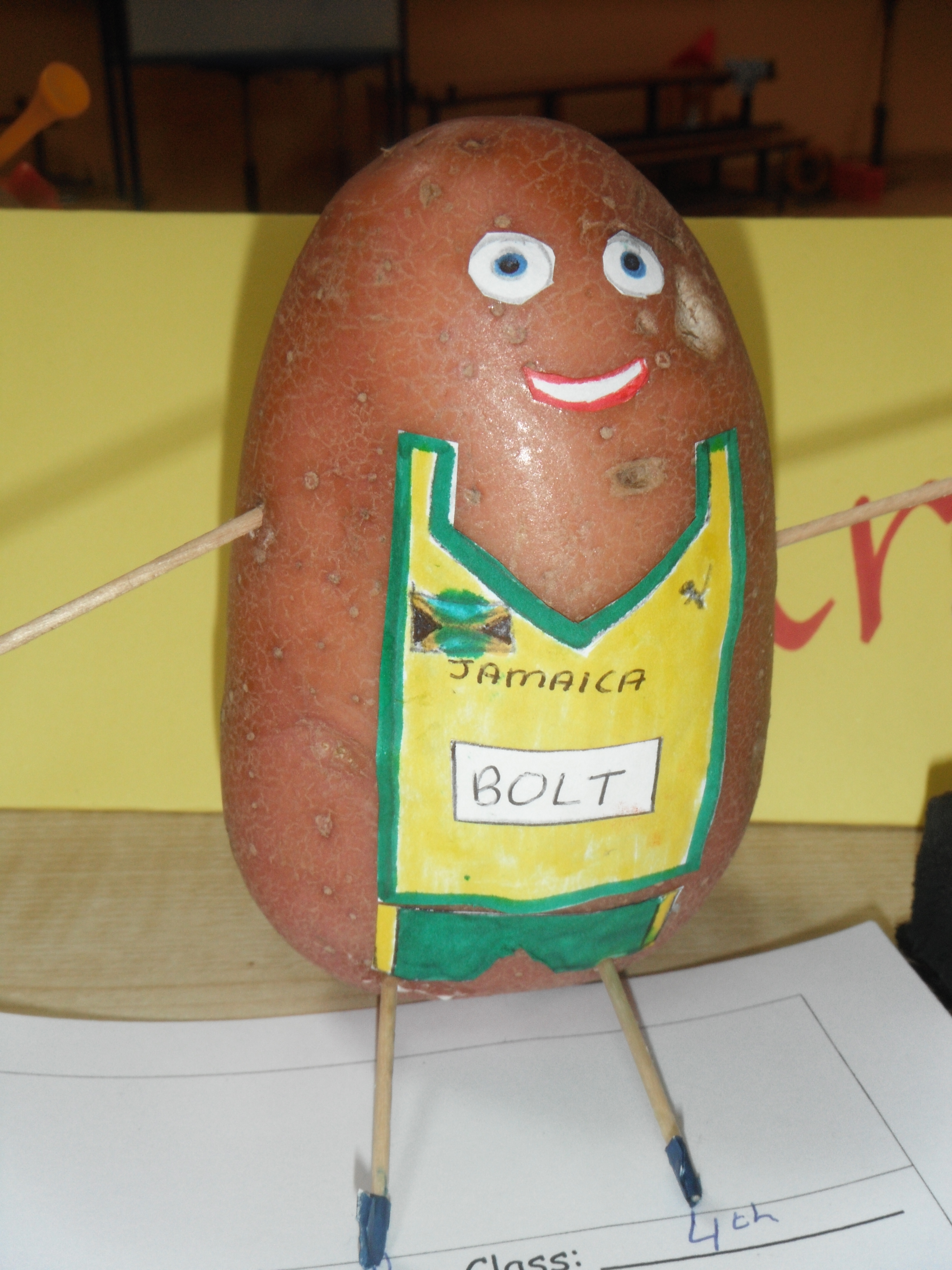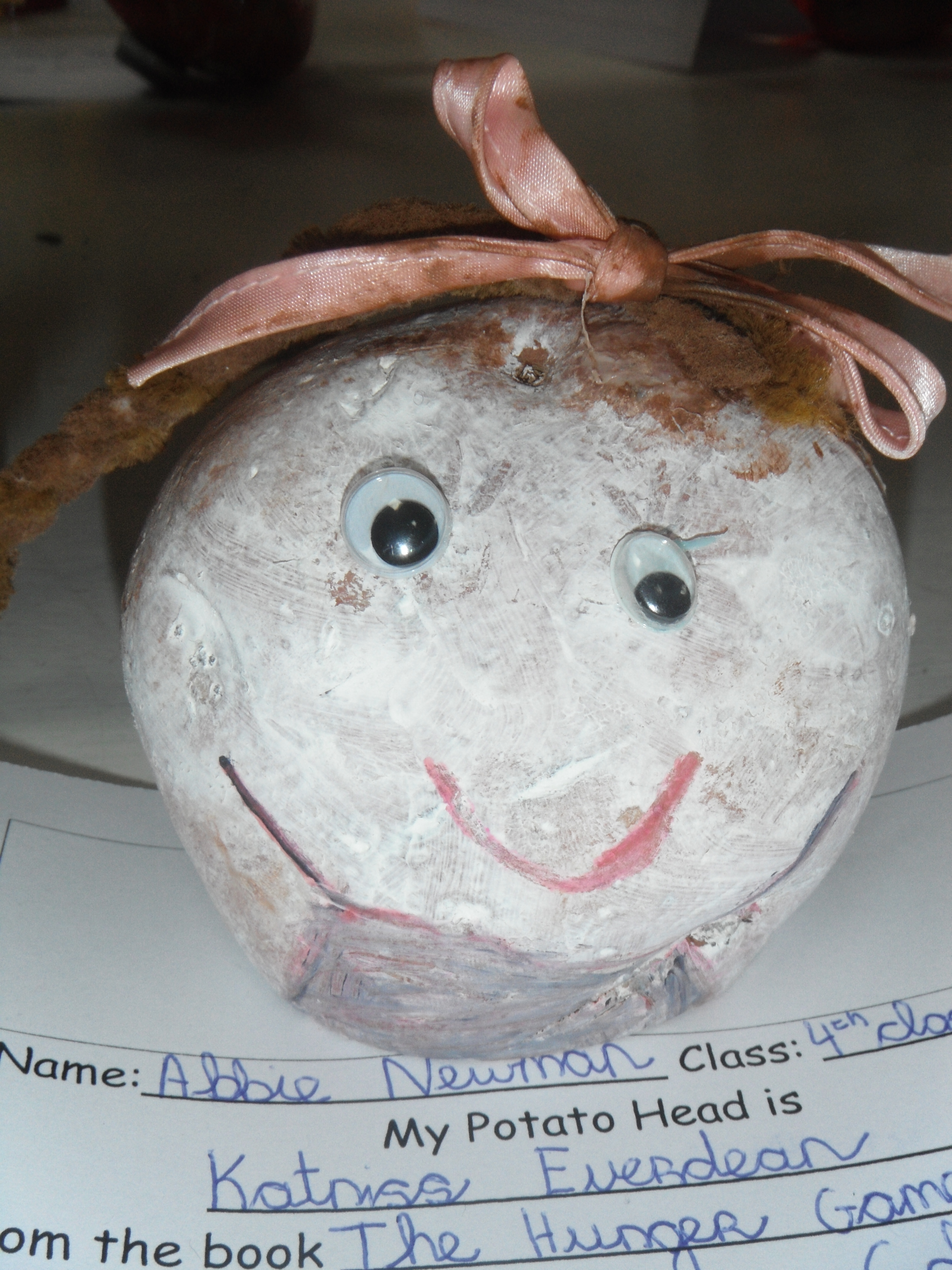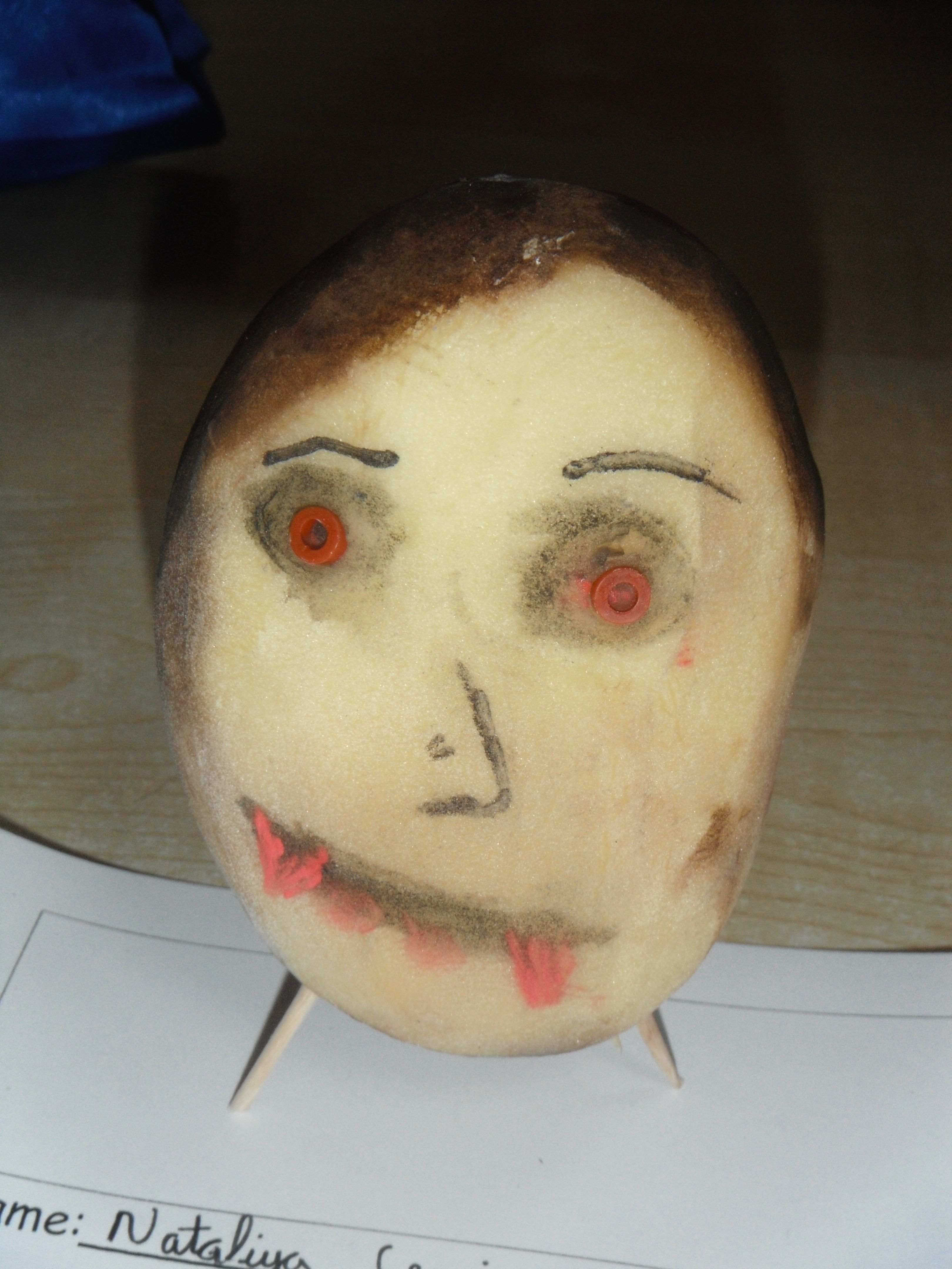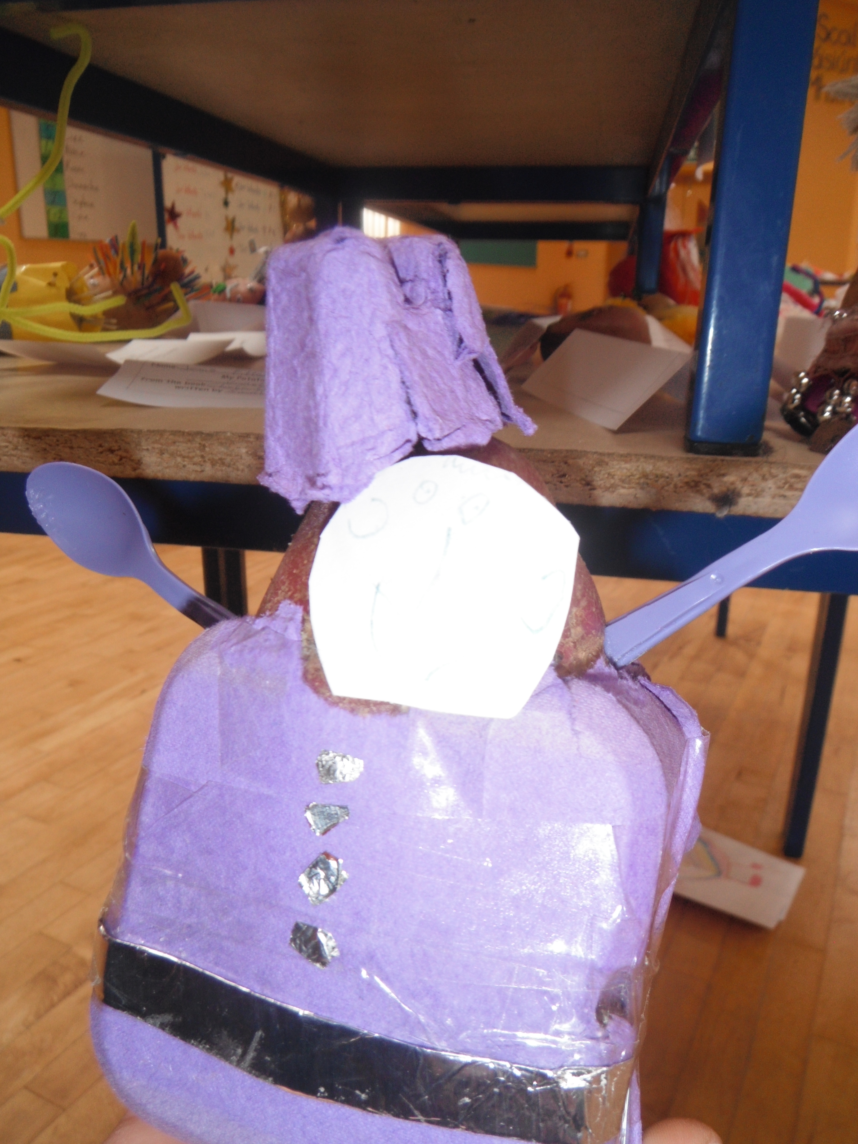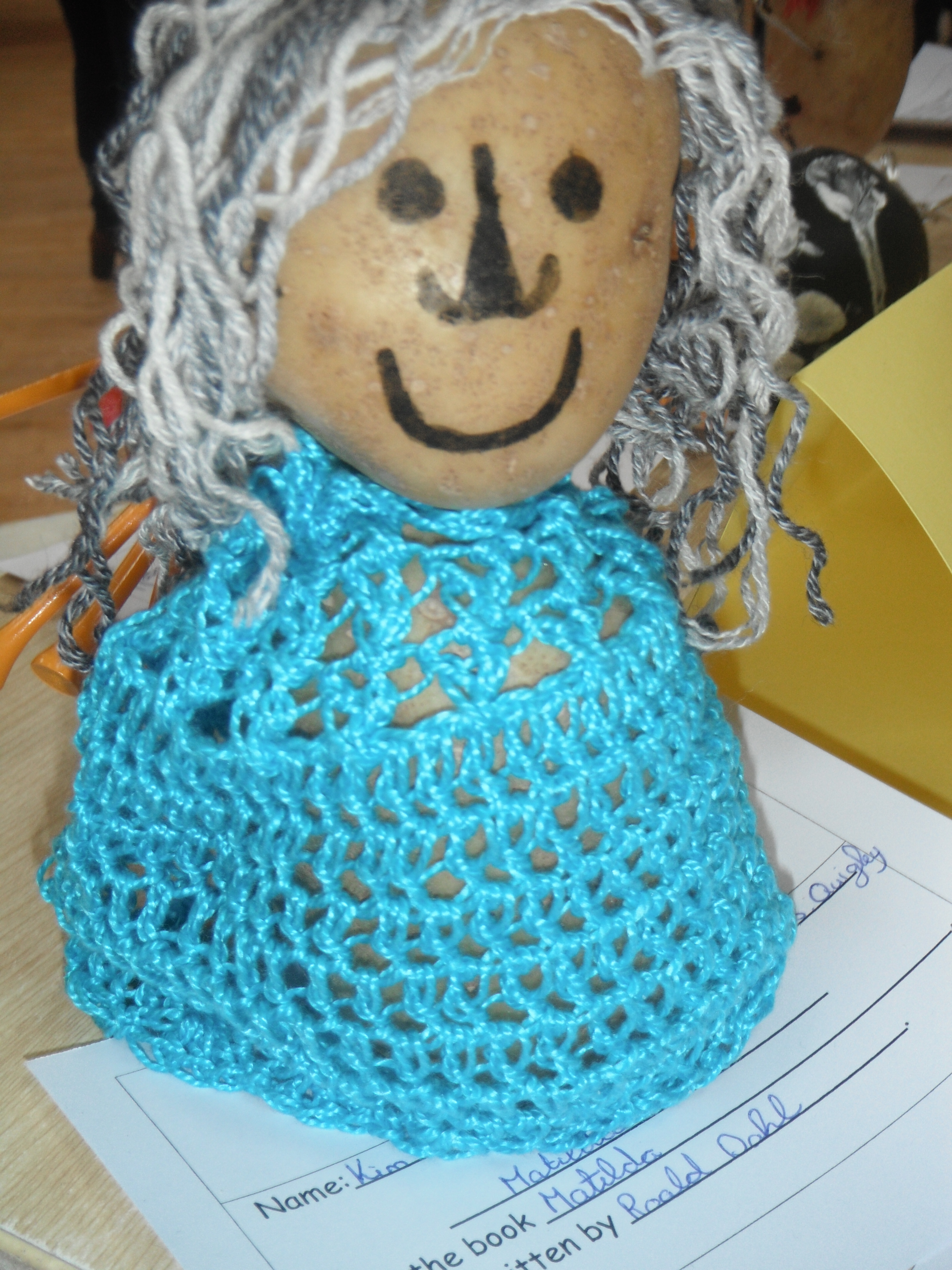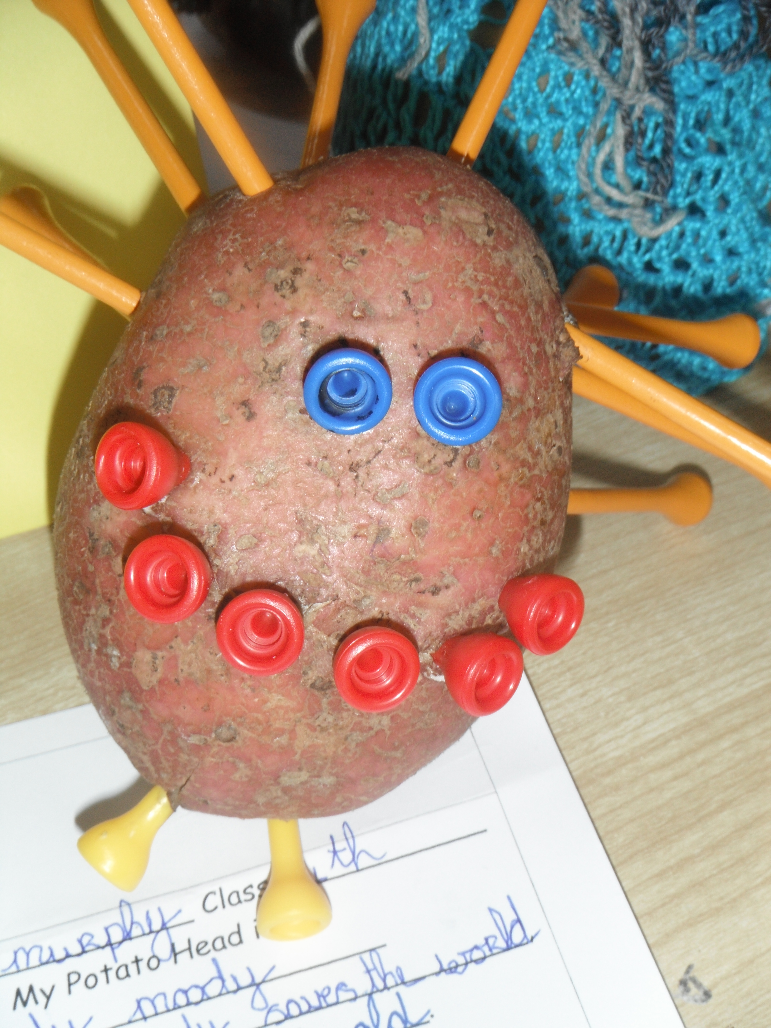 These are photographs of the fantastic potato head characters that children made this weekend and brought to school on Monday. All of the potato heads were made to resemble characters from a book. We had characters from fairytales, autobiographies, comic books and children’s novels. The display in the hall on Monday afternoon was wonderful. Every single potato head designer deserves a huge ‘WELL DONE!’ because these potatoes are absolutely amazing! Have a look…