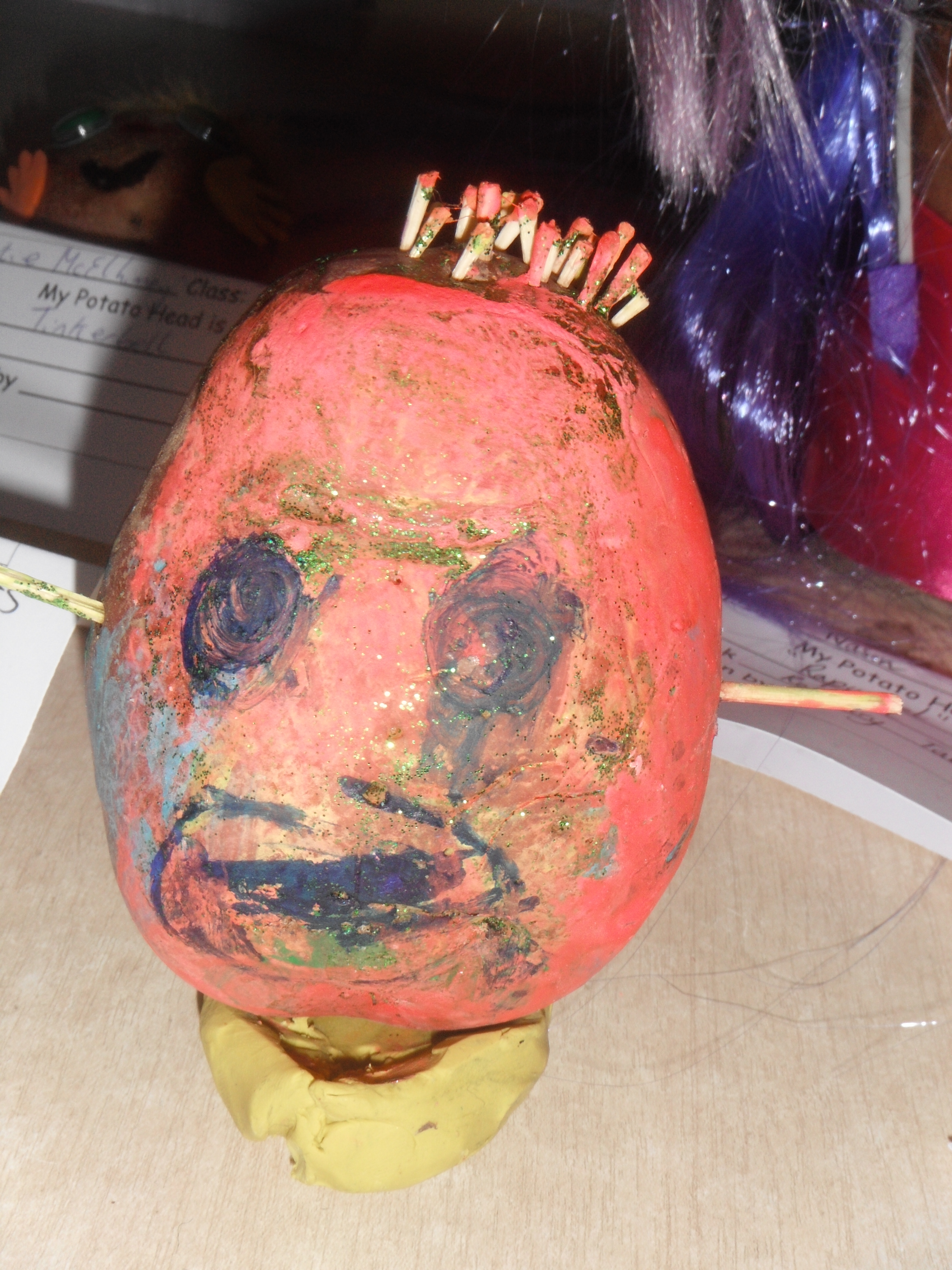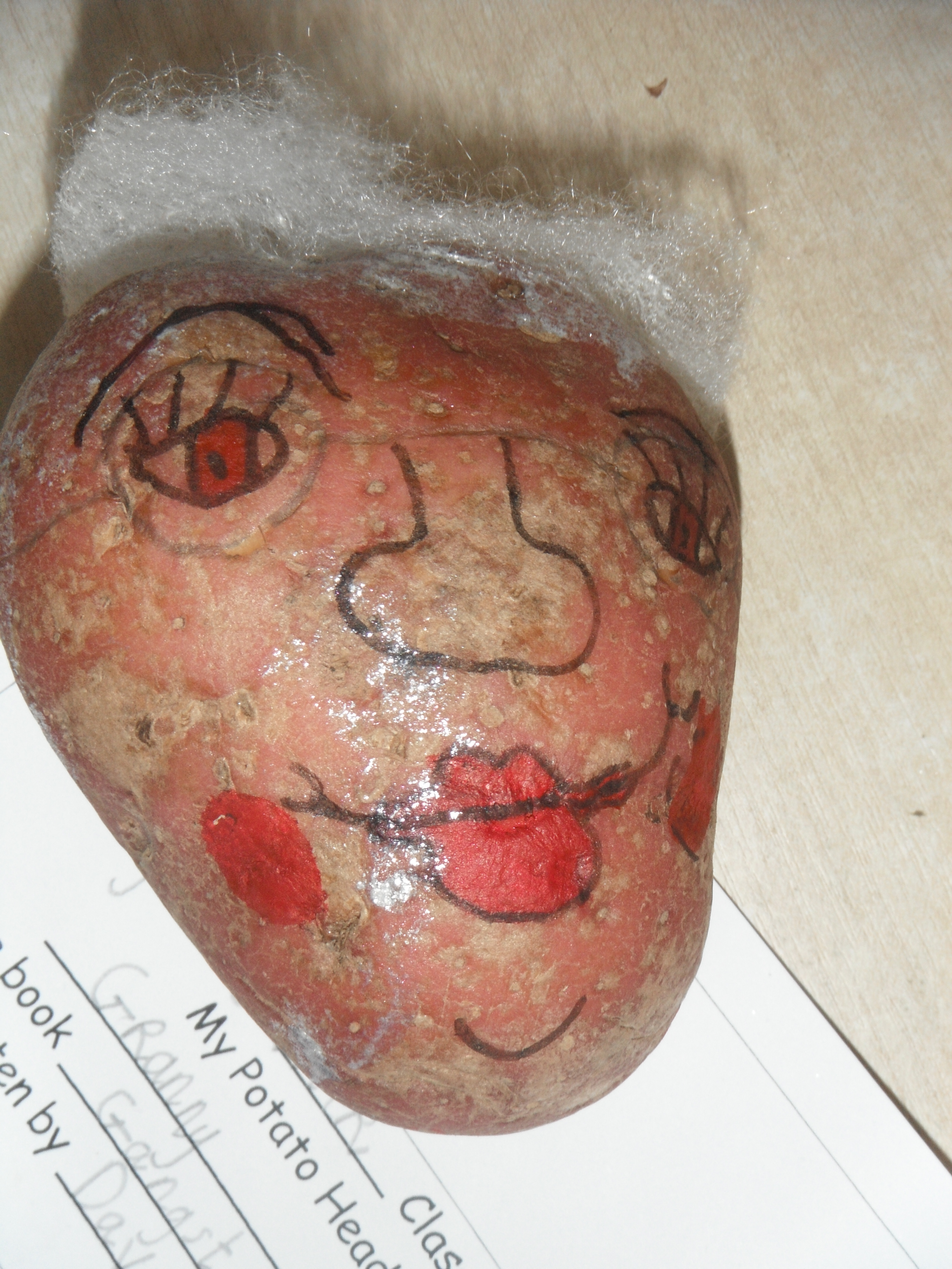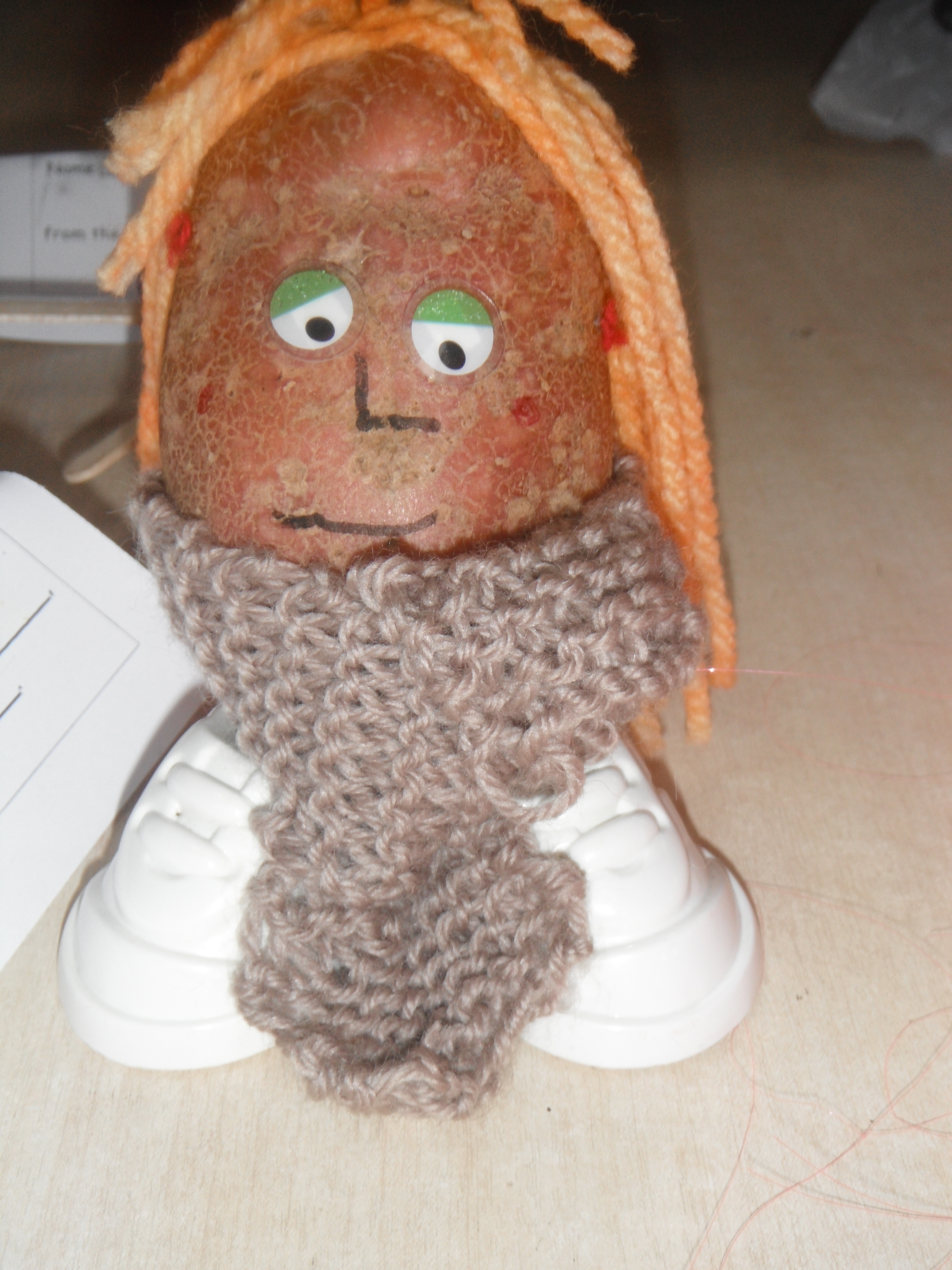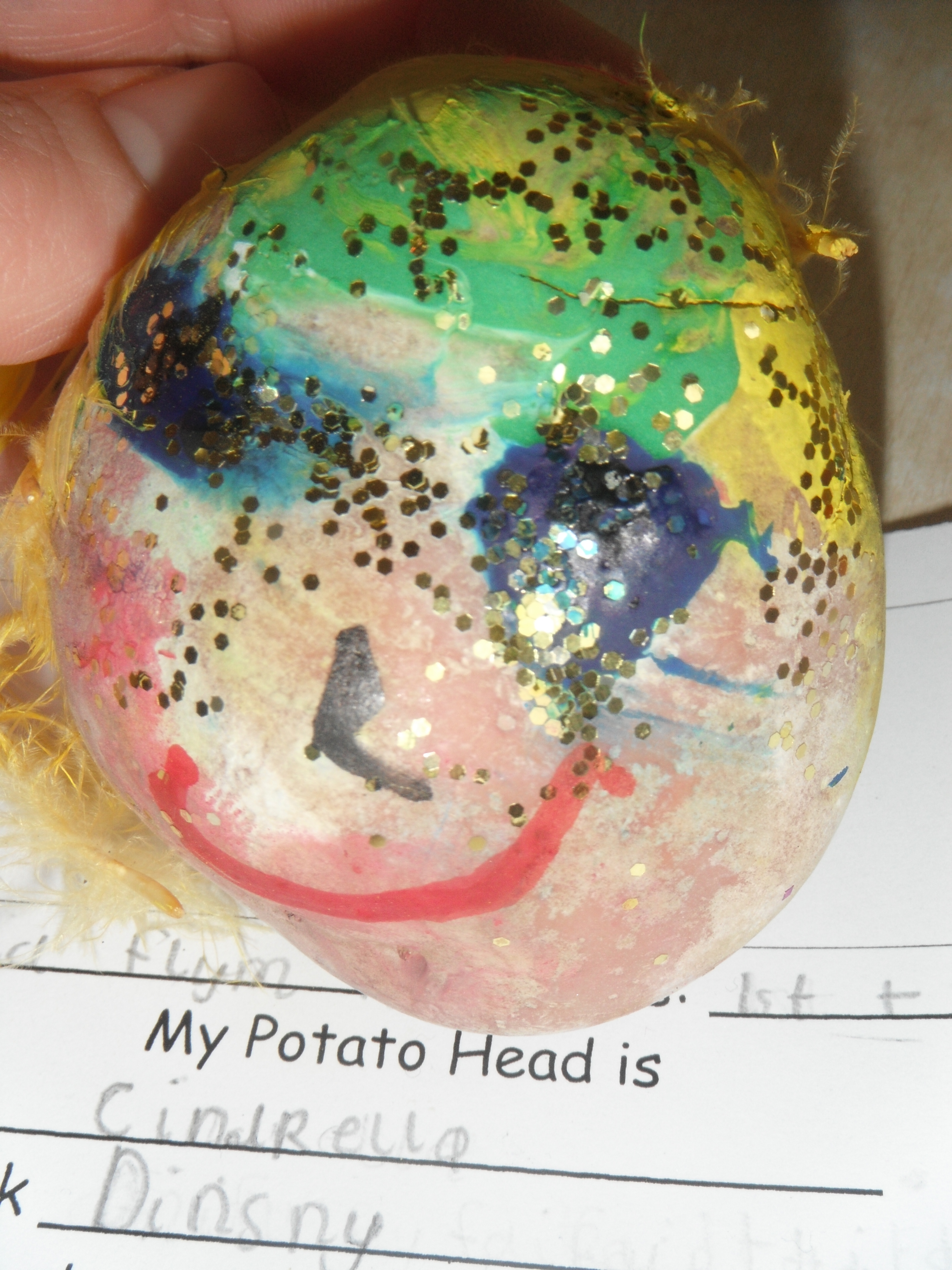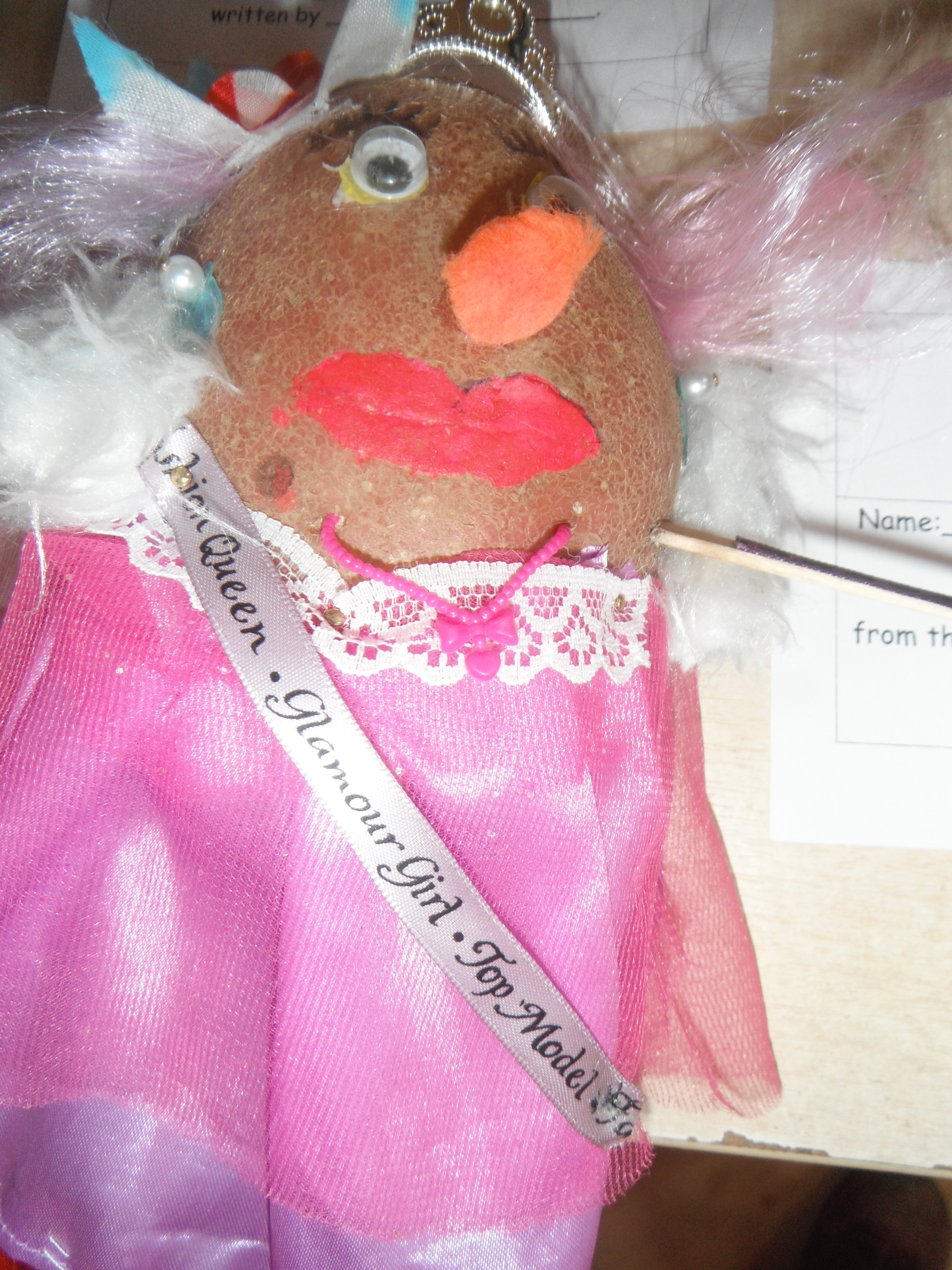 These are photographs of the fantastic potato head characters that children made this weekend and brought to school on Monday. All of the potato heads were made to resemble characters from a book. We had characters from fairytales, autobiographies, comic books and children’s novels. The display in the hall on Monday afternoon was wonderful. Every single potato head designer deserves a huge ‘WELL DONE!’ because these potatoes are absolutely amazing! Have a look…