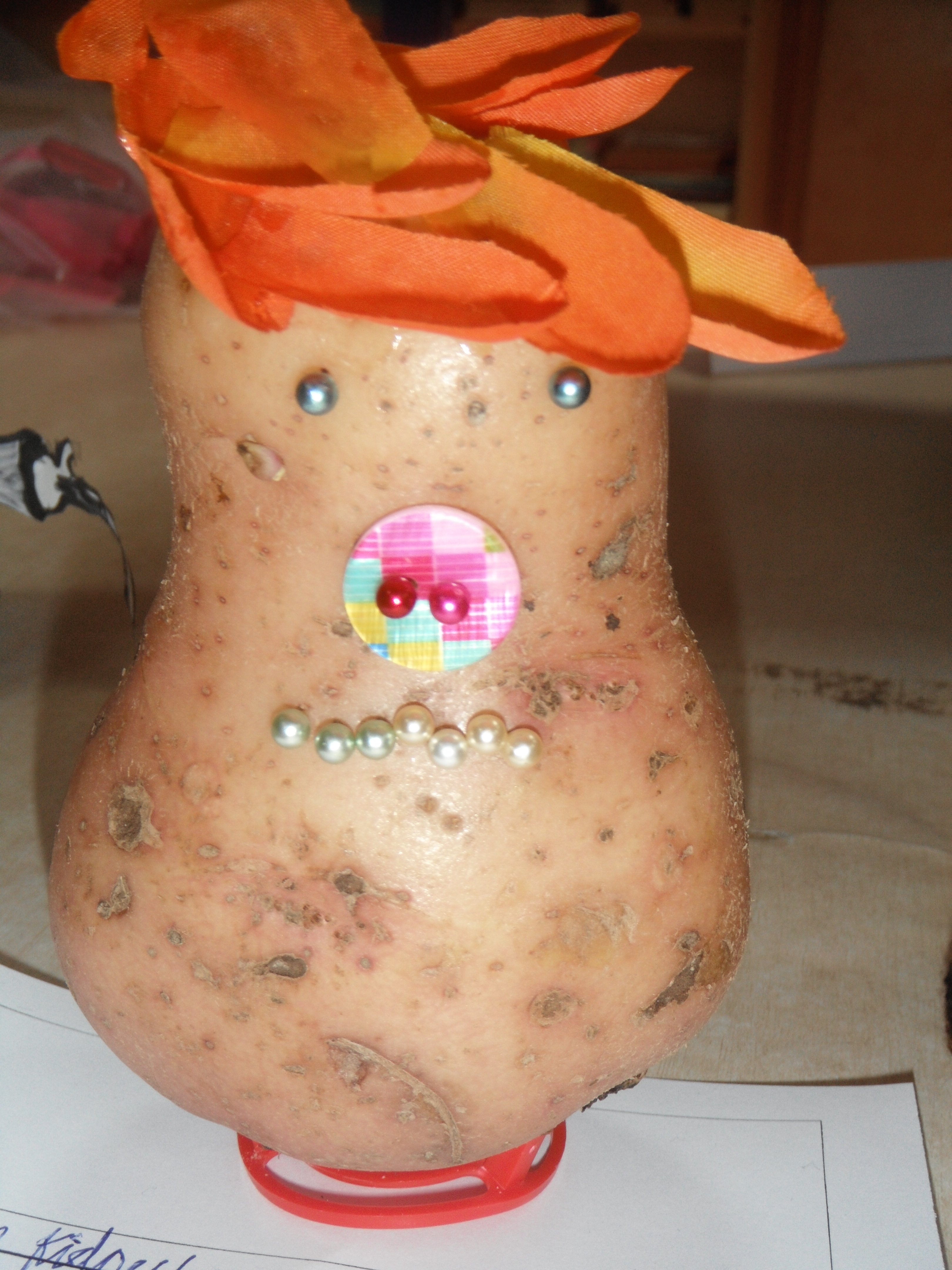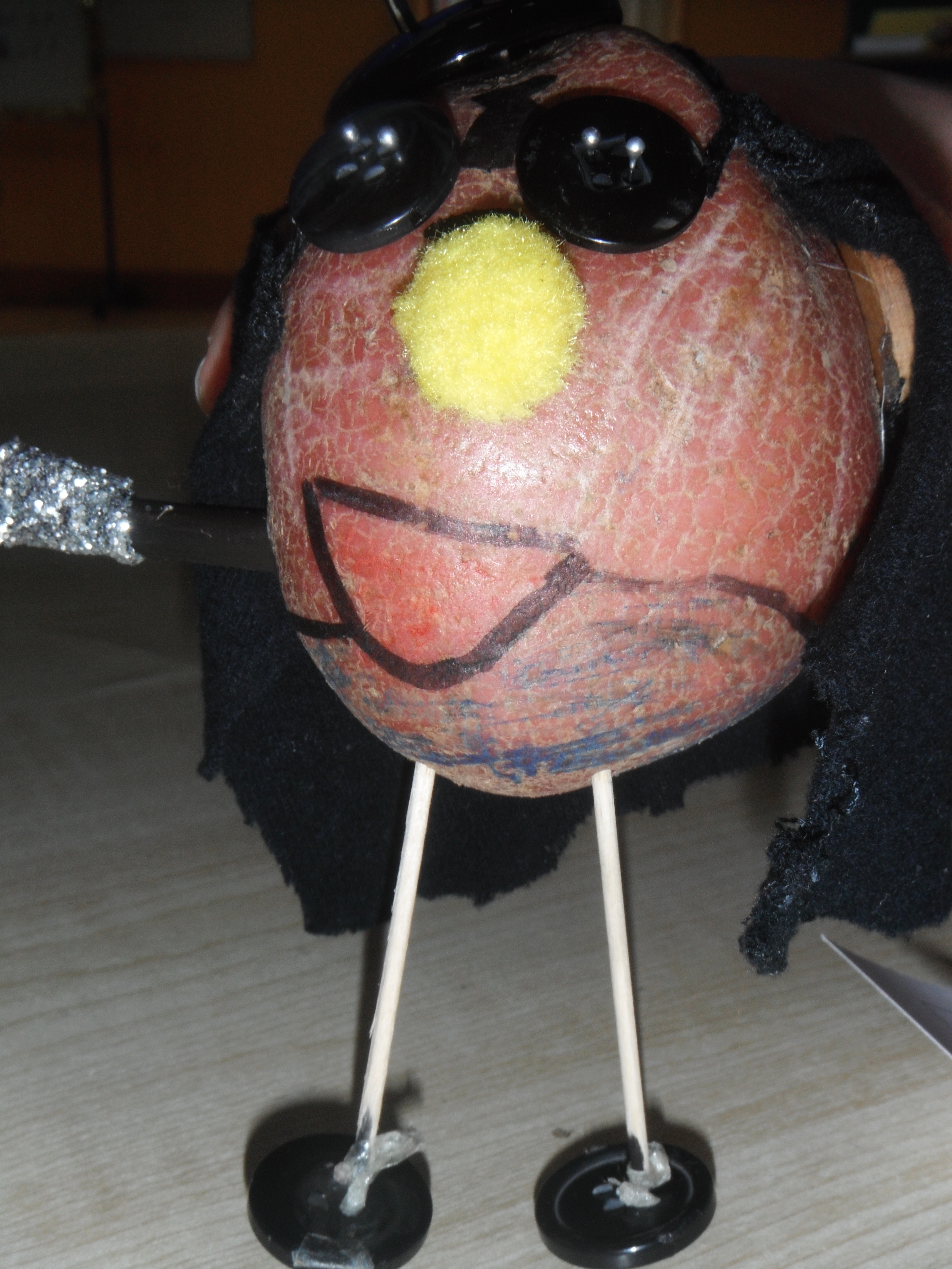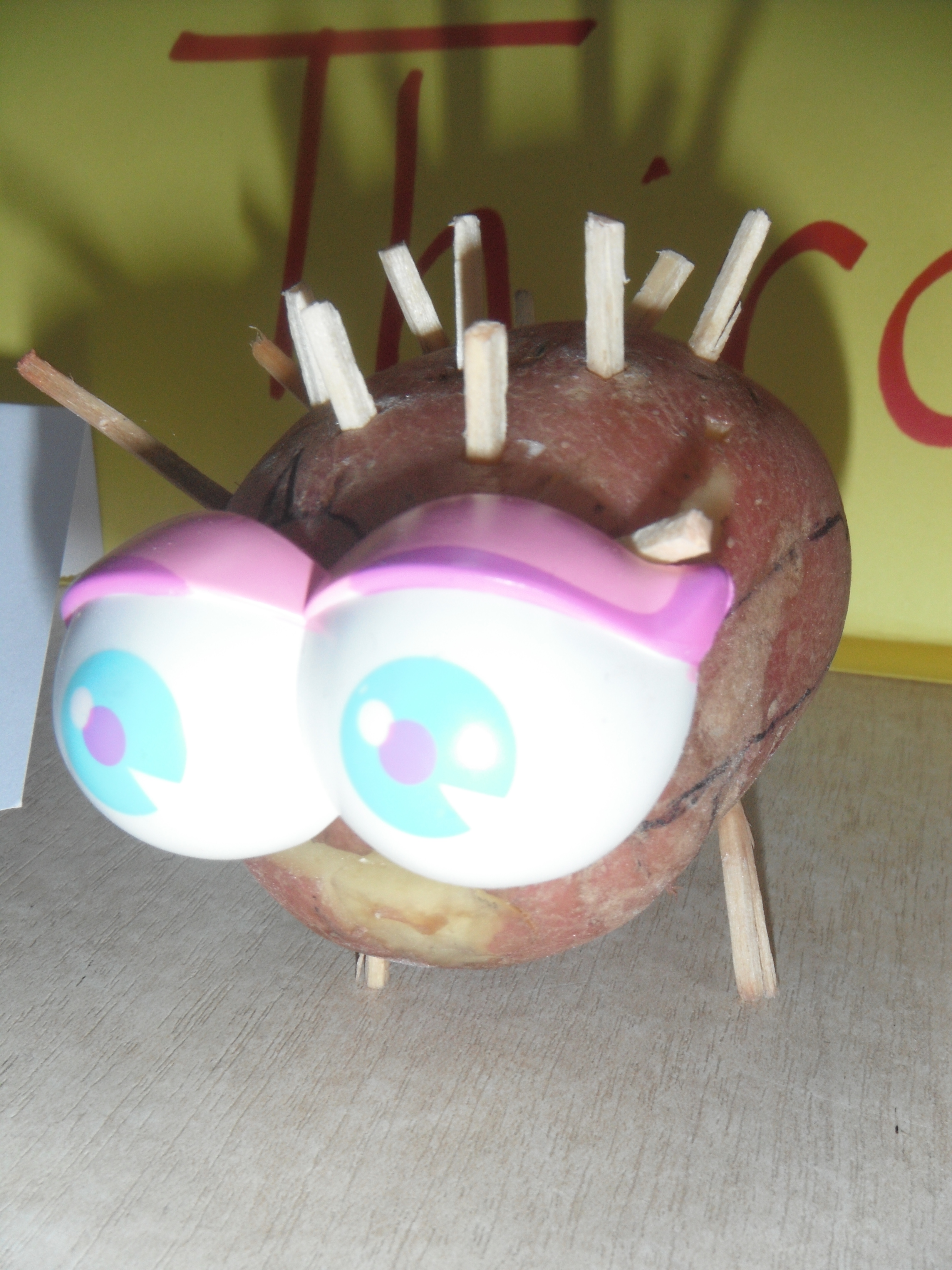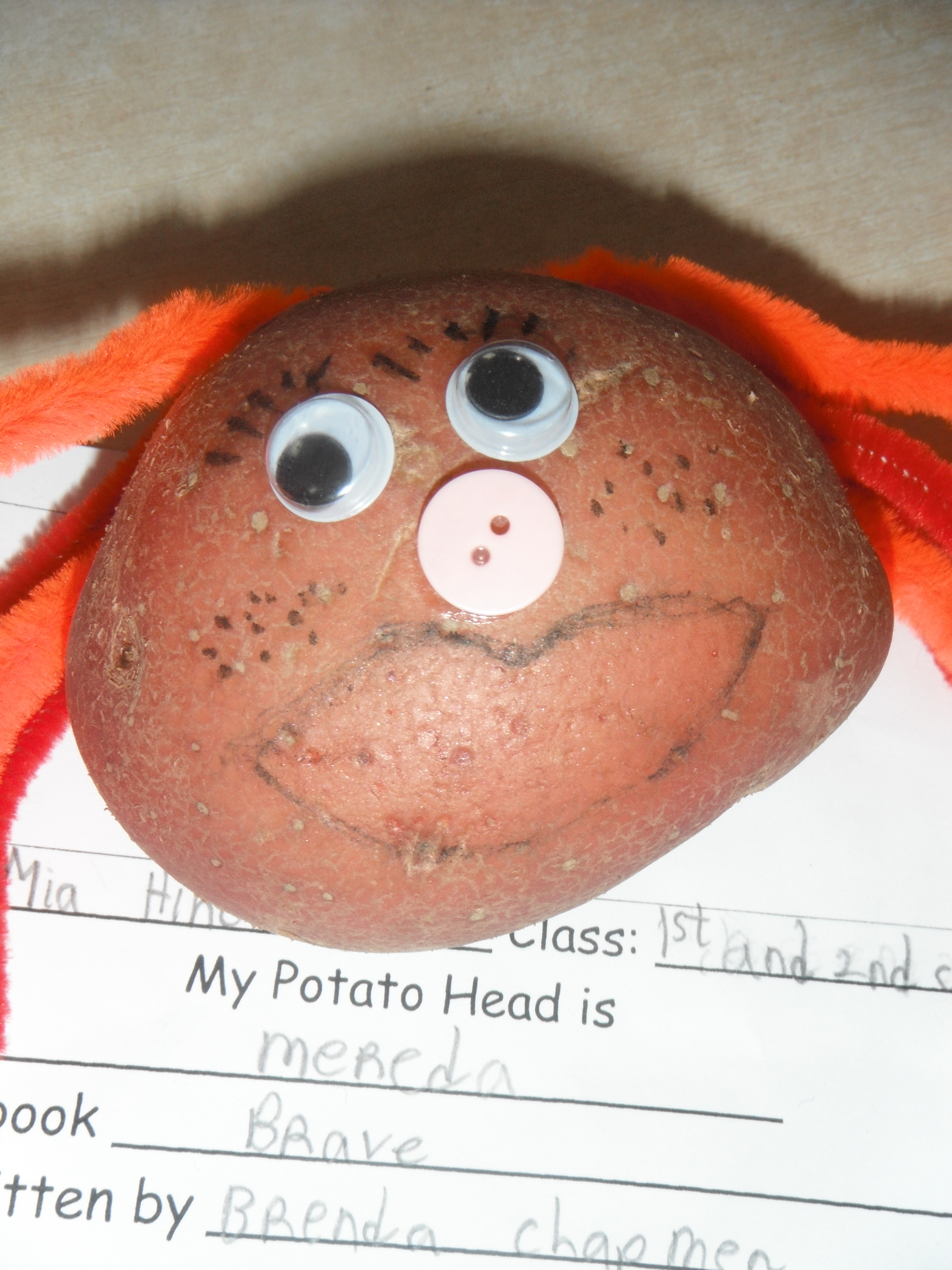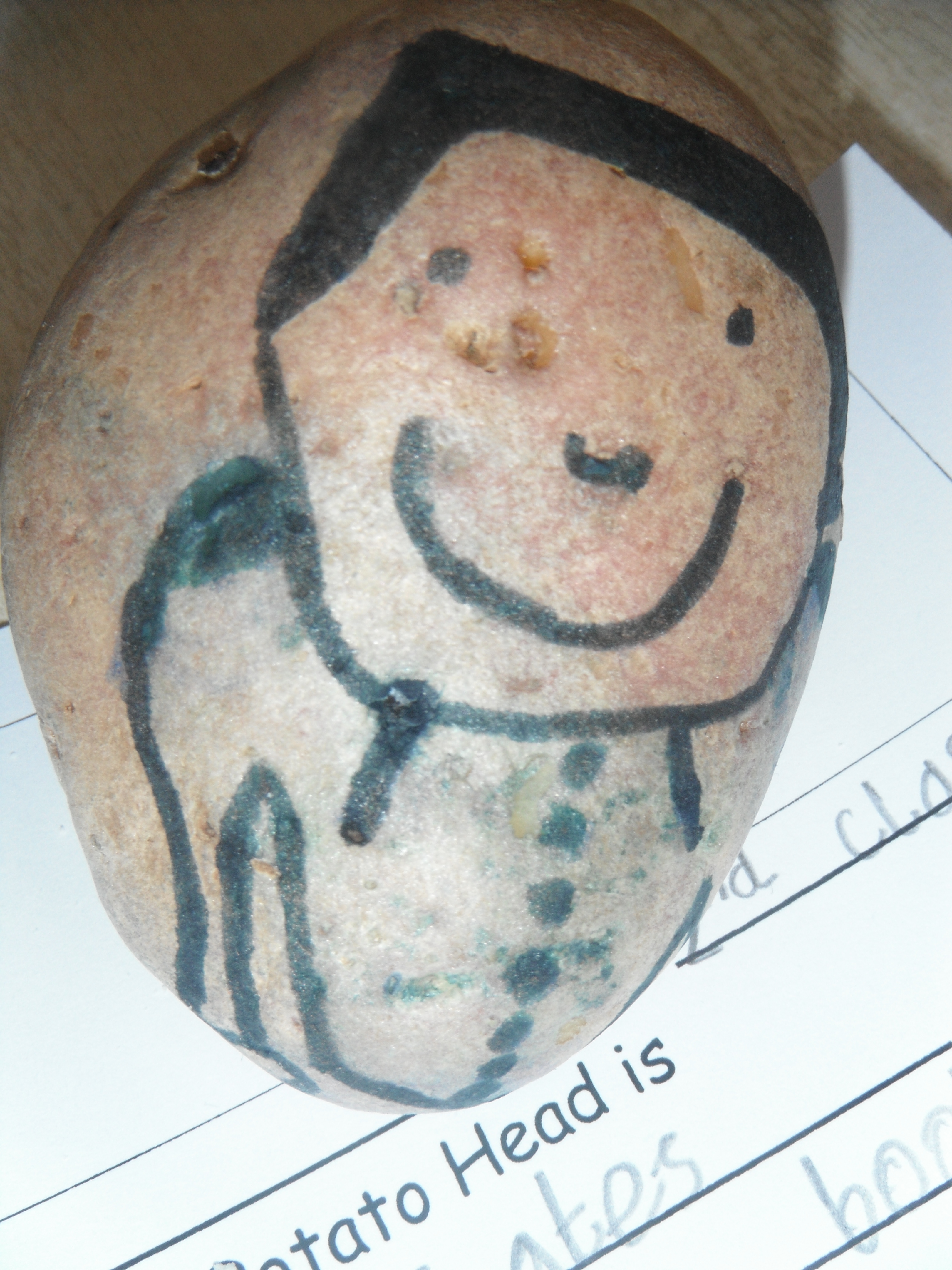 These are photographs of the fantastic potato head characters that children made this weekend and brought to school on Monday. All of the potato heads were made to resemble characters from a book. We had characters from fairytales, autobiographies, comic books and children’s novels. The display in the hall on Monday afternoon was wonderful. Every single potato head designer deserves a huge ‘WELL DONE!’ because these potatoes are absolutely amazing! Have a look…