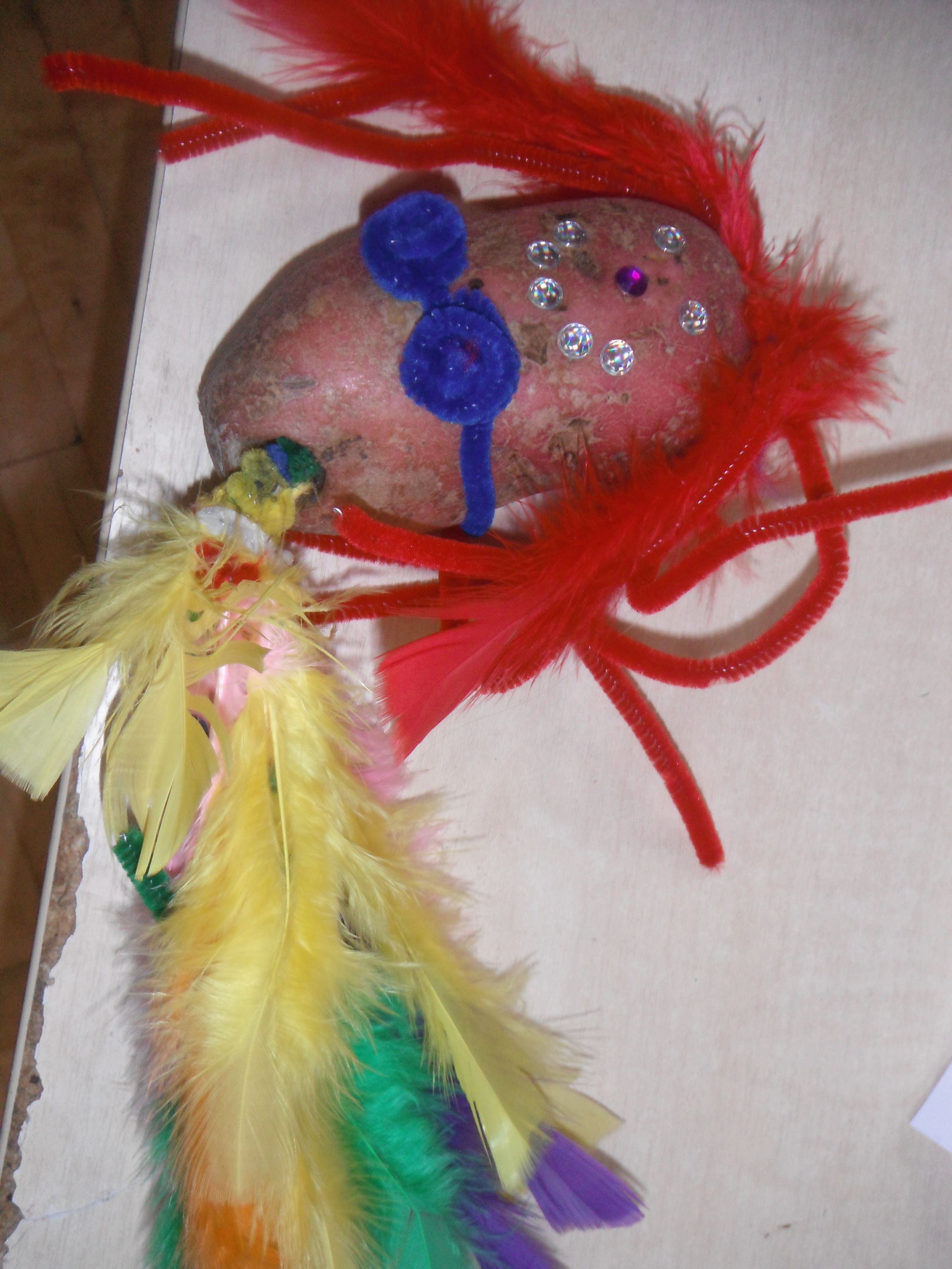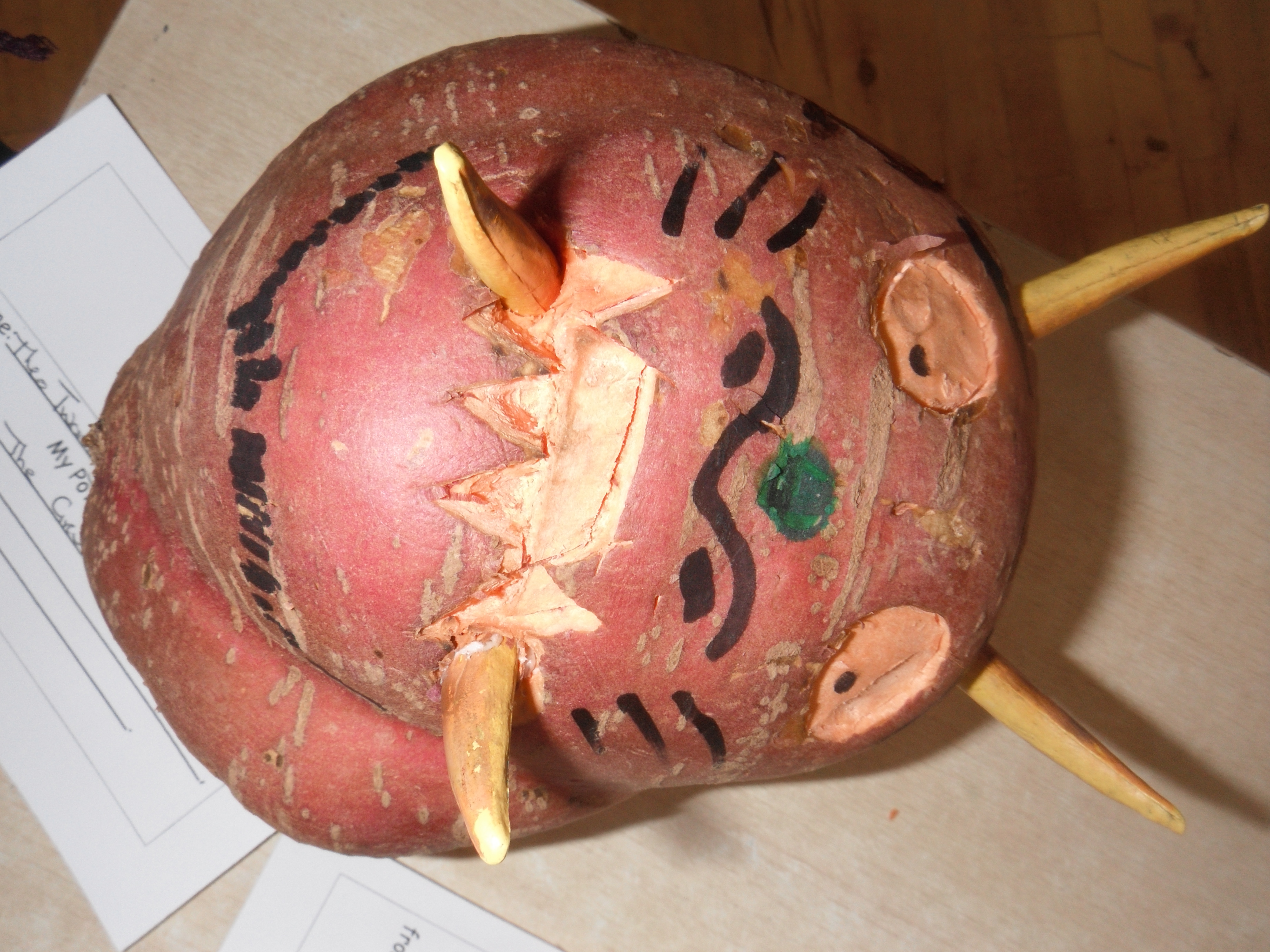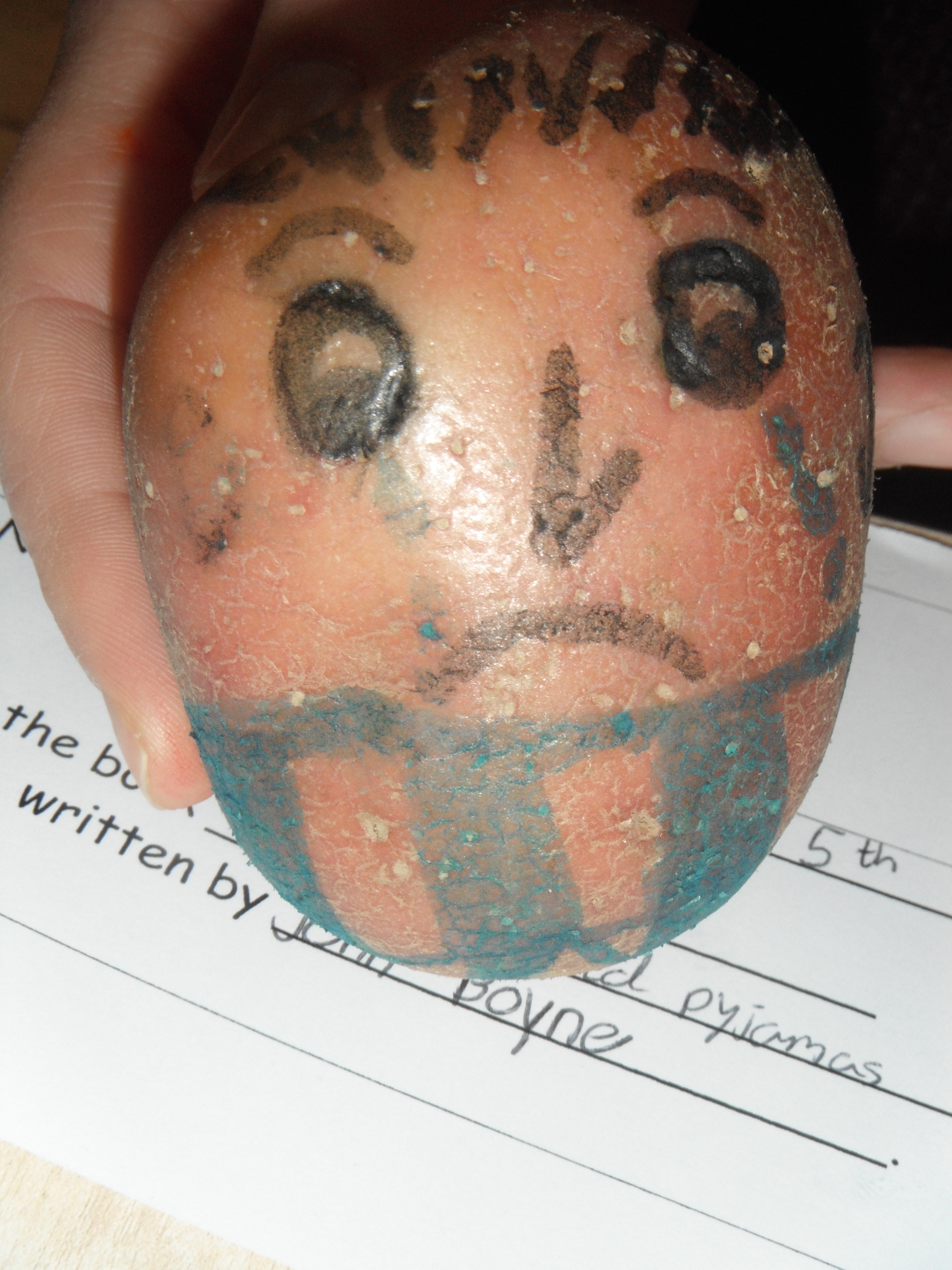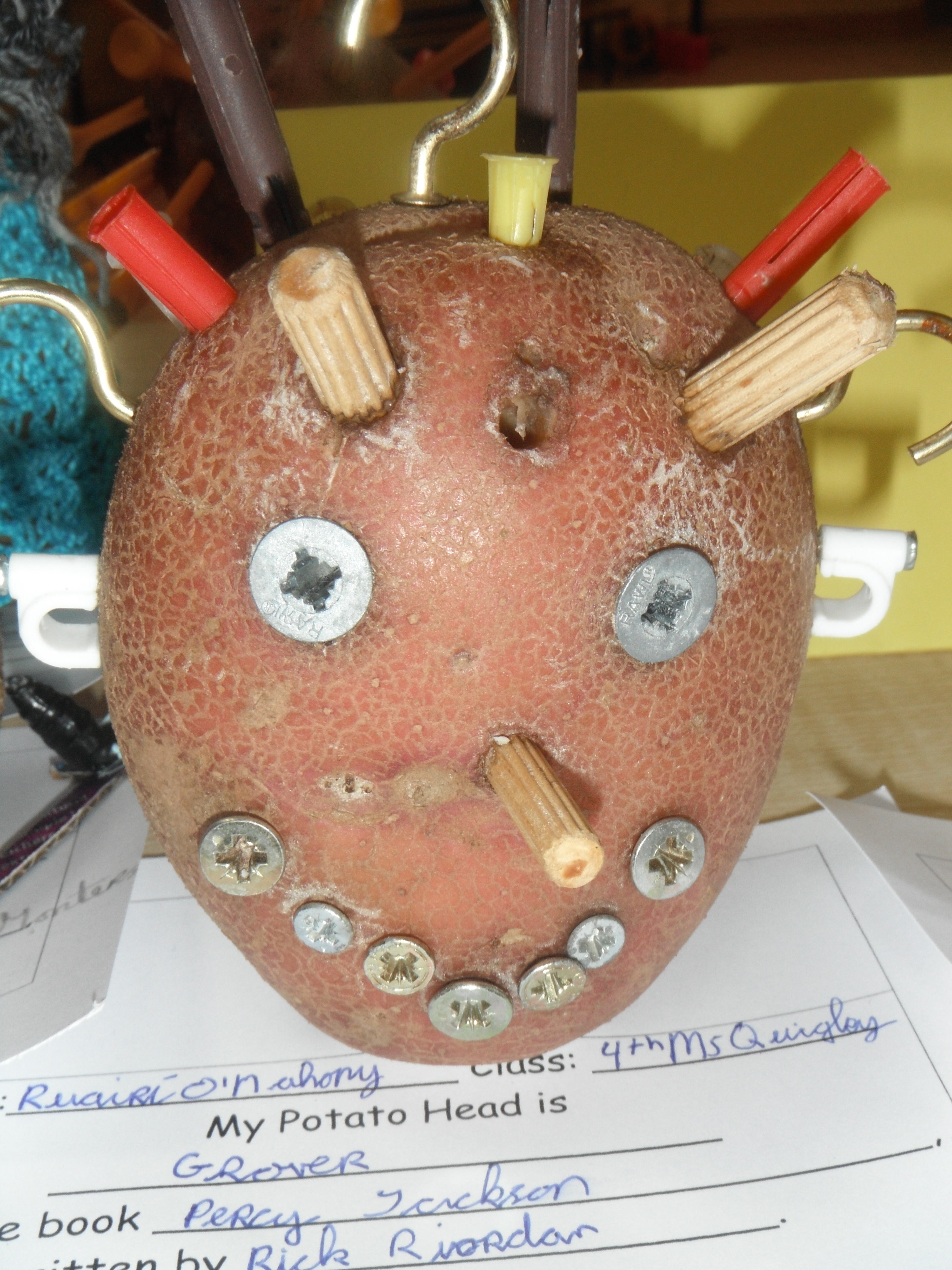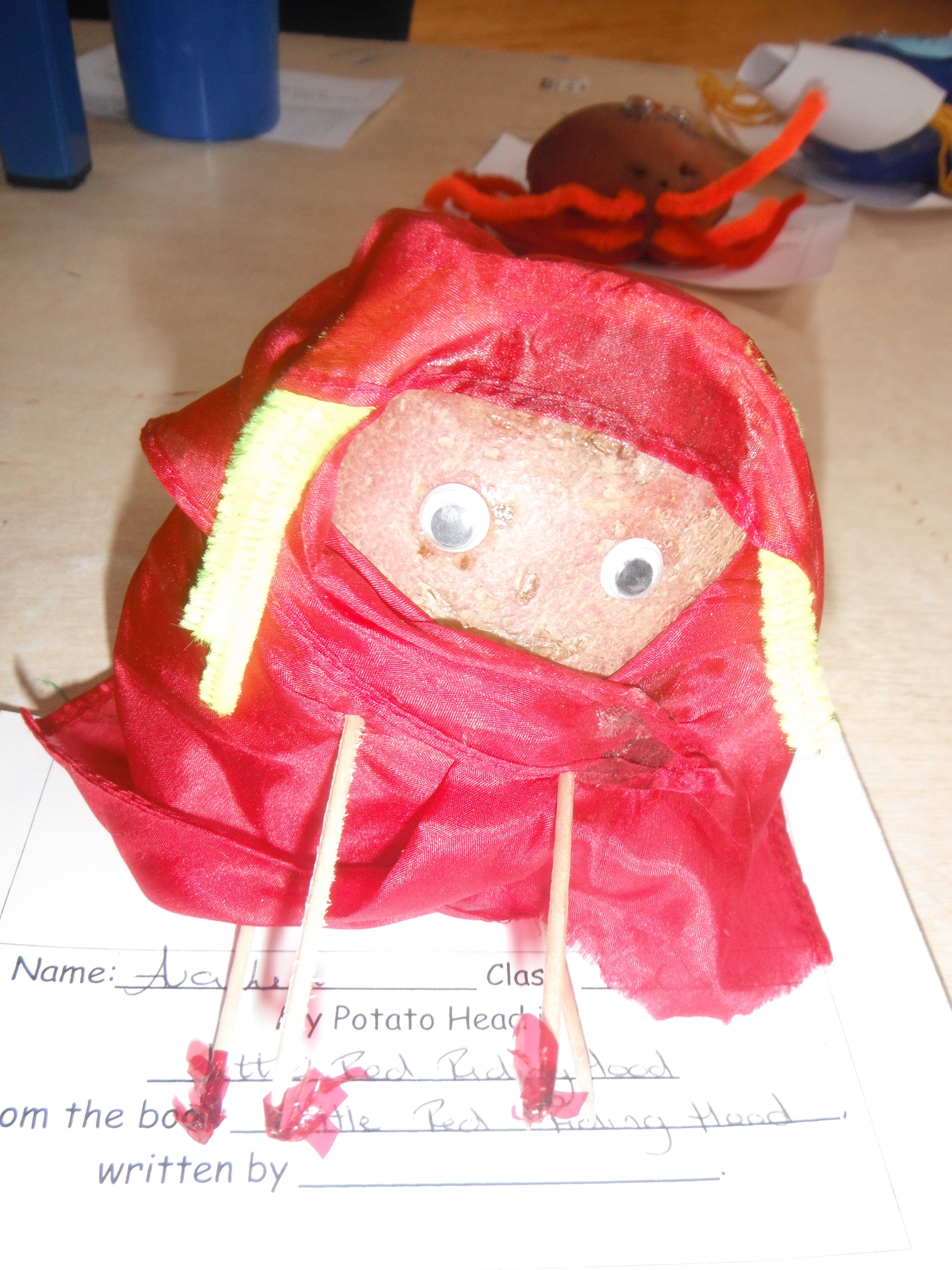 These are photographs of the fantastic potato head characters that children made this weekend and brought to school on Monday. All of the potato heads were made to resemble characters from a book. We had characters from fairytales, autobiographies, comic books and children’s novels. The display in the hall on Monday afternoon was wonderful. Every single potato head designer deserves a huge ‘WELL DONE!’ because these potatoes are absolutely amazing! Have a look…