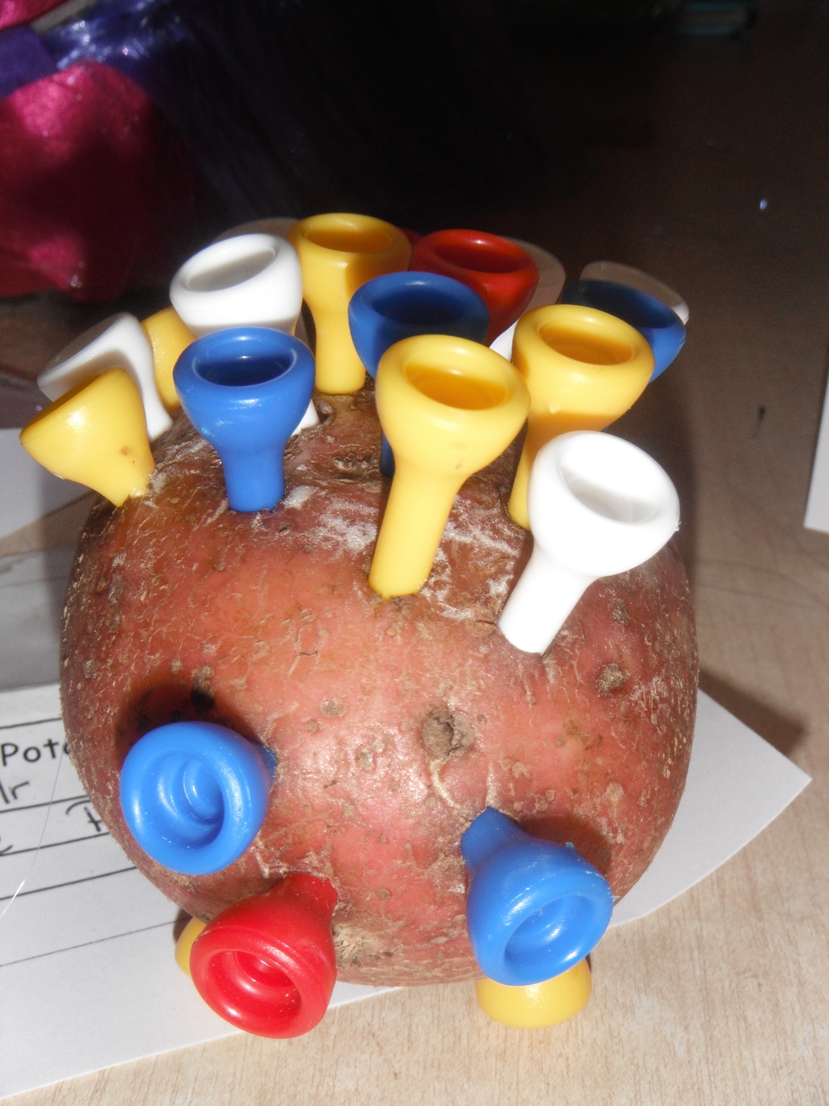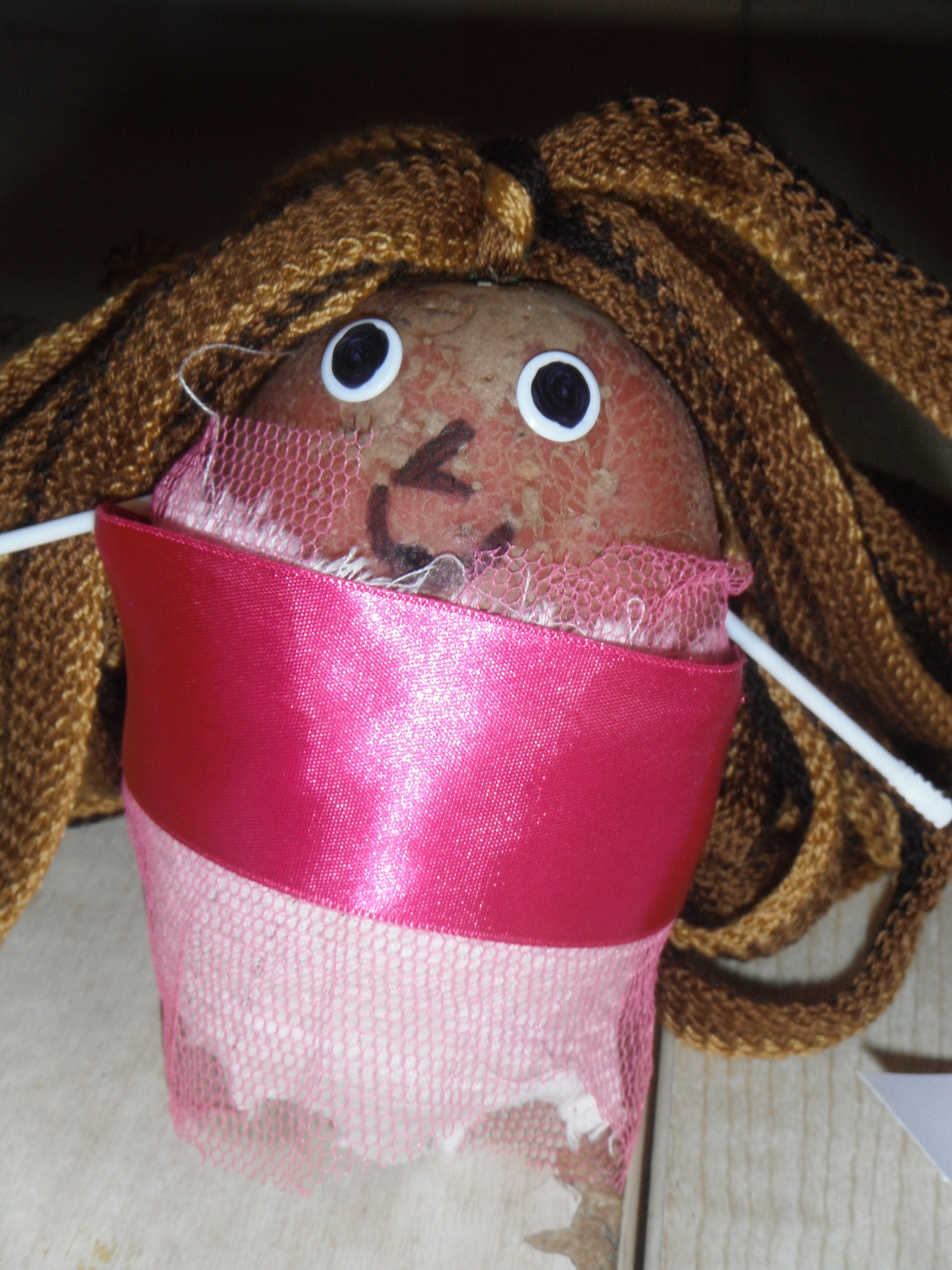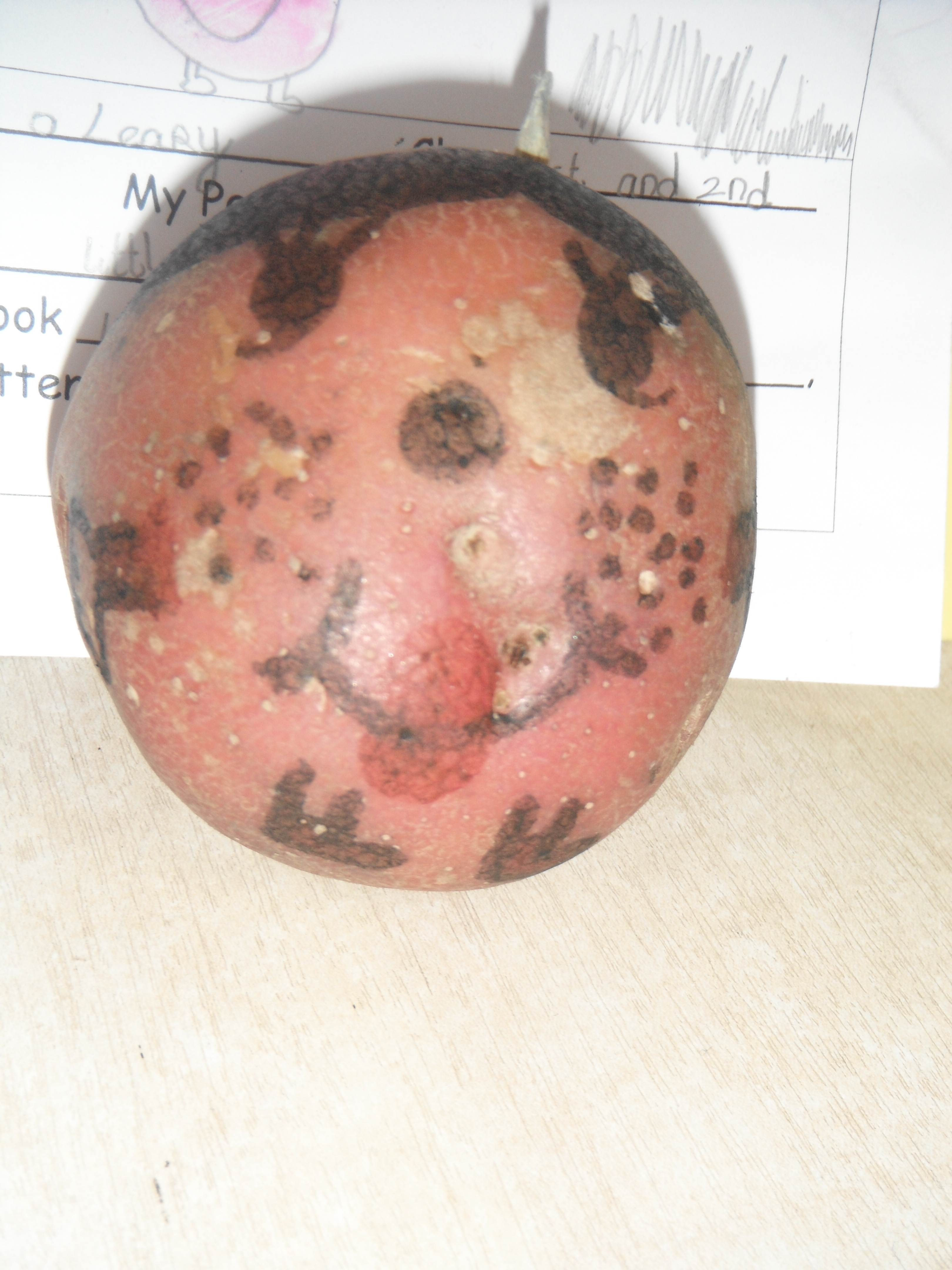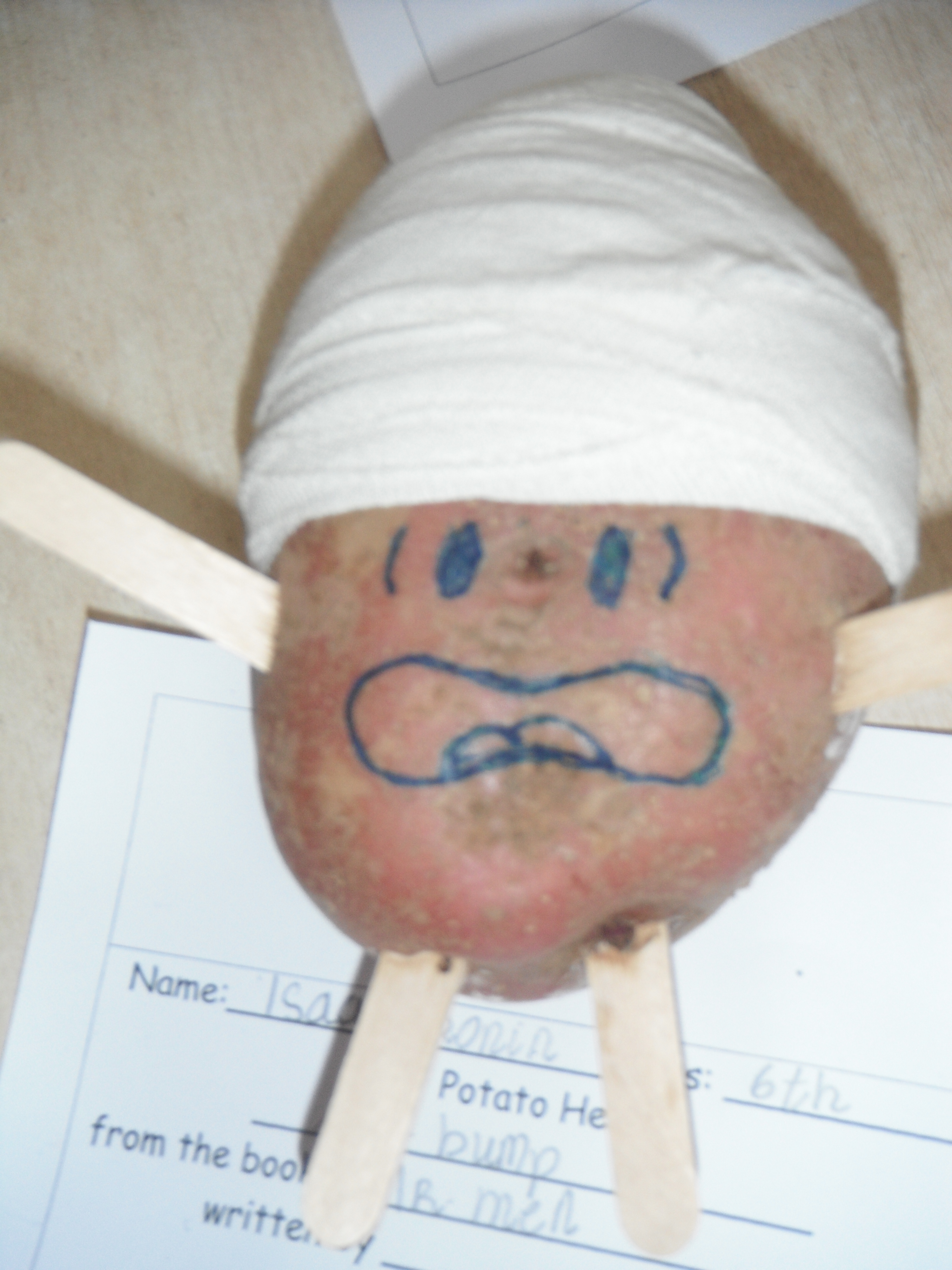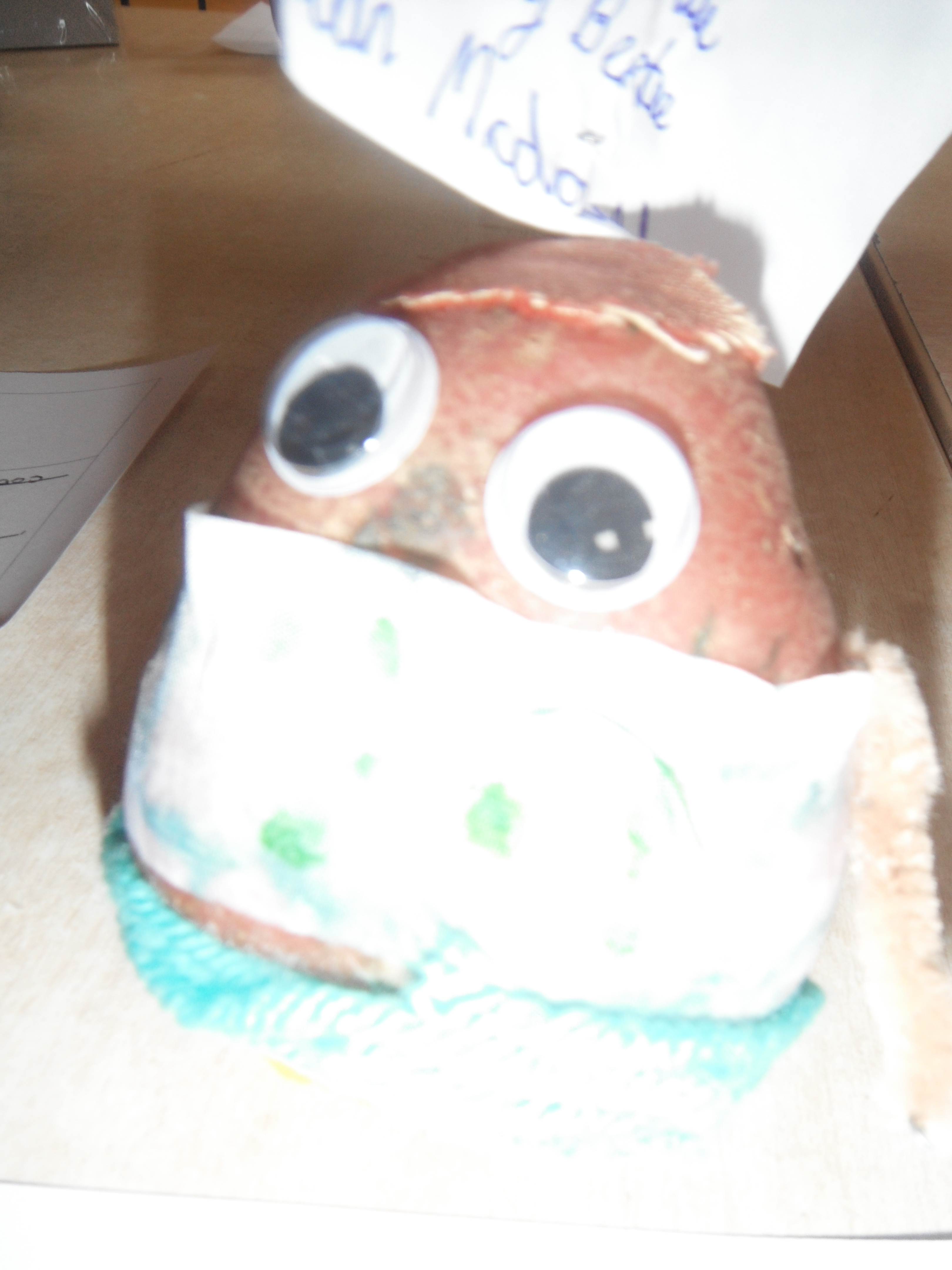 These are photographs of the fantastic potato head characters that children made this weekend and brought to school on Monday. All of the potato heads were made to resemble characters from a book. We had characters from fairytales, autobiographies, comic books and children’s novels. The display in the hall on Monday afternoon was wonderful. Every single potato head designer deserves a huge ‘WELL DONE!’ because these potatoes are absolutely amazing! Have a look…