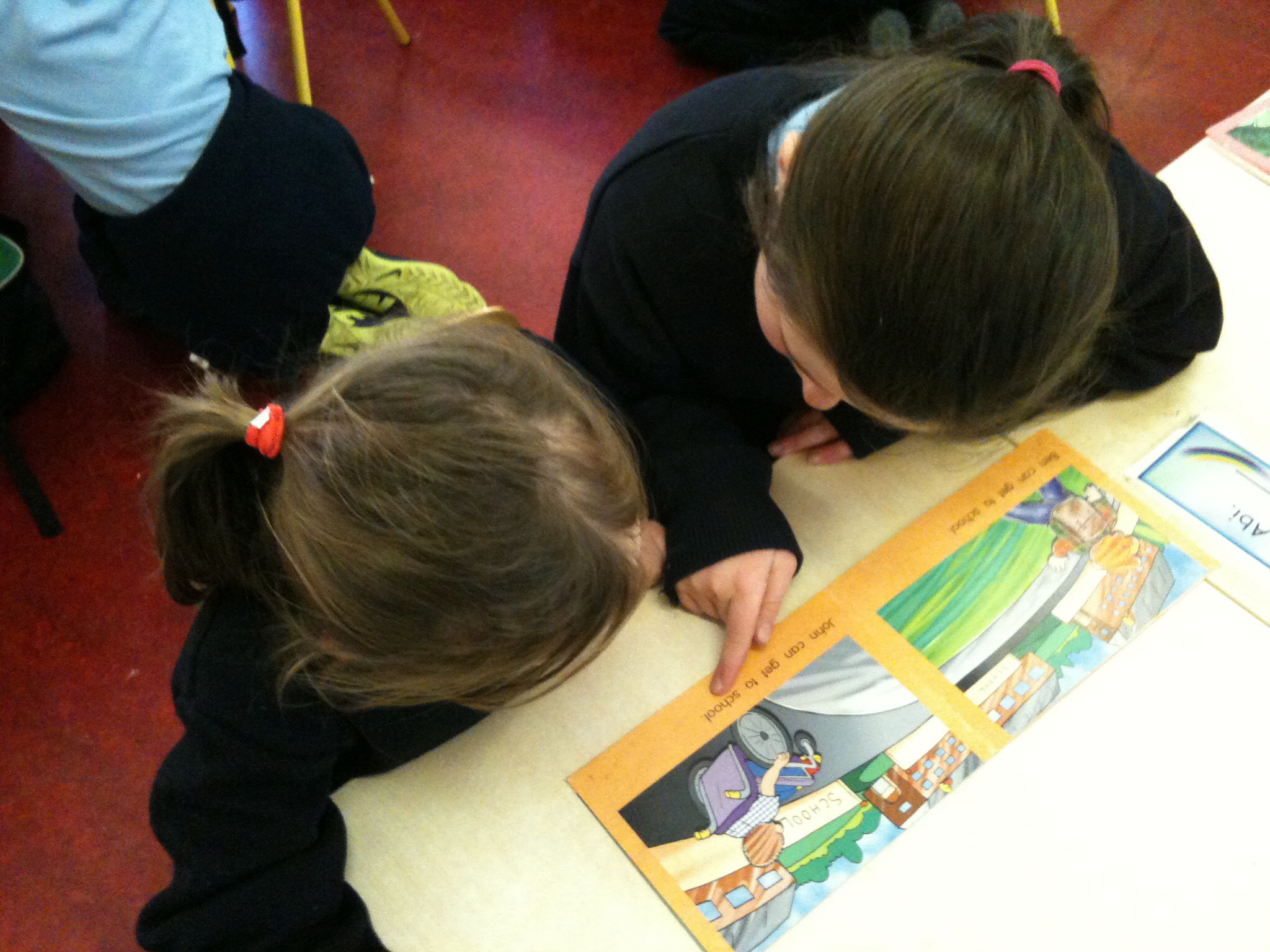 Make a ‘book buddy’ with a boy or girl in another class. Read stories to each other. Enjoy a book/books together. Here are some of the book buddies in action.